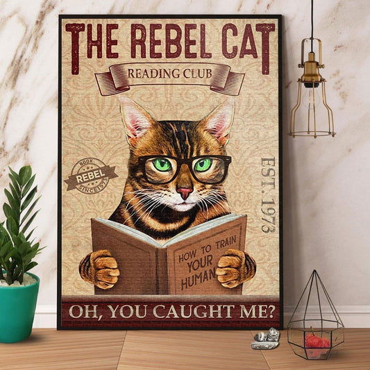 Bengal Cat Portrait Canvas, The Rebel Cat Reading Club You Caught Me Portrait Canvas, Premium Wrapped Canvas - Perfect Gift For Bengal Cat Owner