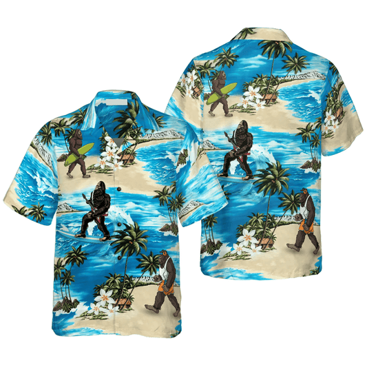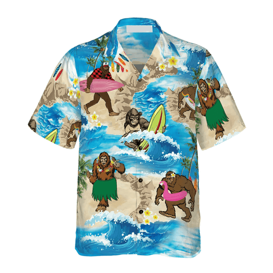 Bigfoot Hawaiian Shirt - Bigfoots Are On Summer Hawaiian Shirt, Tropical Aloha Wave Surfing Bigfoot Hawaiian Shirt - Perfect Gift For Husband, Boyfriend, Friend, Family