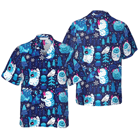 Bigfoot Hawaiian Shirt - Christmas Bigfoot In The Forest Hawaiian Shirt, Funny Christmas Bigfoot Hawaiian Shirt - Perfect Gift For Husband, Boyfriend, Friend, Family