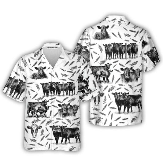 Cow Hawaiian Shirt, Monochrome Black Angus And Wheat Pattern Aloha Shirt For Men Women - Perfect Gift For Cow Lovers, Husband, Friend, Family