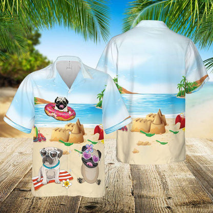 Pug Aloha Hawaiian Shirts For Summer, Dog Beach Theme Hawaiian Set Holiday For Men Women, Gift For Dog Lovers, Dog Owner, Dog Mom Dad