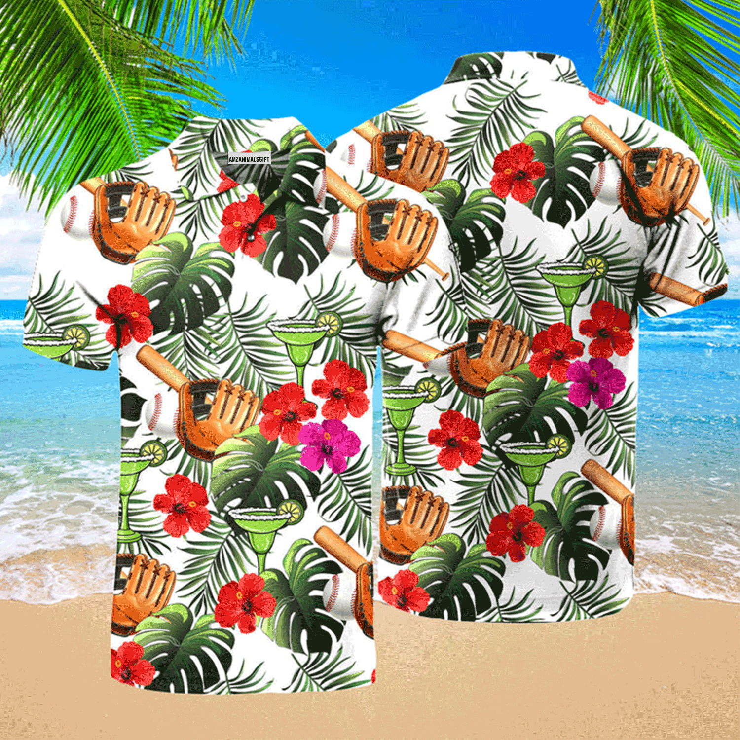 Baseball Men Polo Shirt, Baseball Tropical Leaves Summer Holiday Polo Shirt Shirt For Men, Perfect Polo Shirt For Baseball Lovers