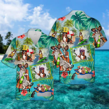 Basset Hound Hawaiian, Tropical Summer, Dog Surfing Hawaiian Shirt For Men - Perfect Gift For Basset Hound Lovers, Husband, Boyfriend, Friend, Family