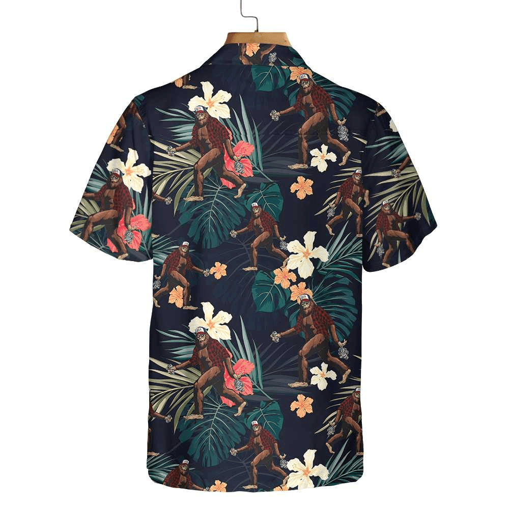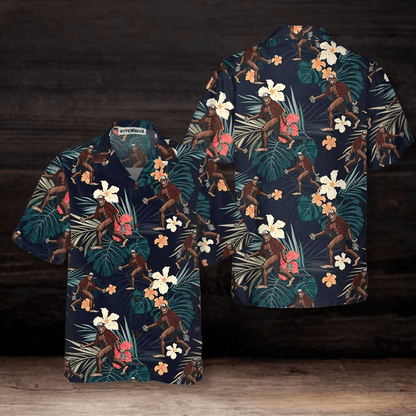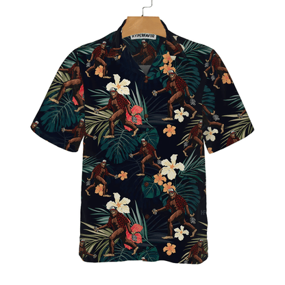 Bigfoot Hawaiian Shirt, Bigfoot With Tropical Leaves Funny Halloween Hawaiian Shirt, Best Halloween Hawaiian Shirt - Perfect Gift For Husband, Boyfriend, Friend, Family
