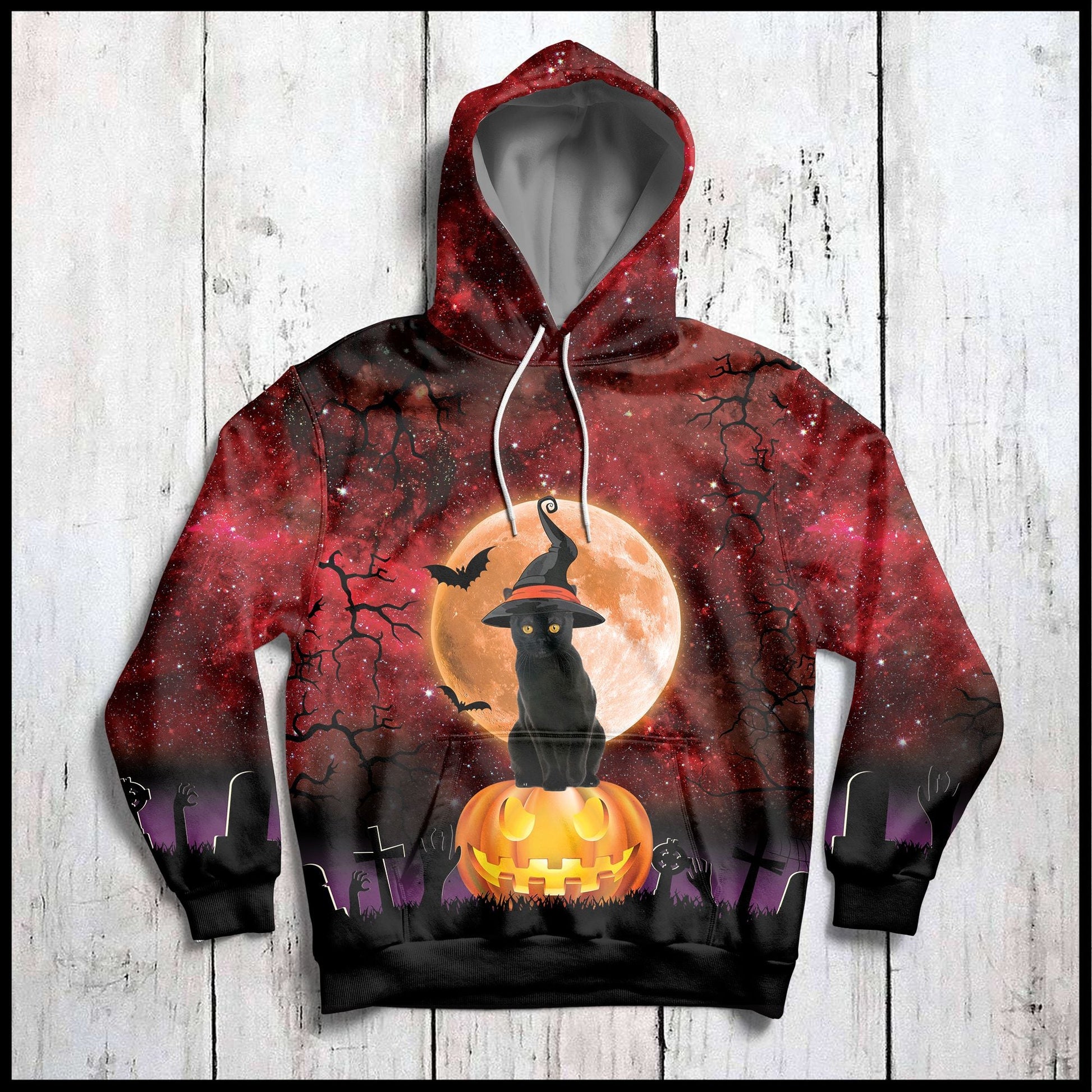 Black Cat Halloween Red Sky Pullover Premium Hoodie, Perfect Outfit For Men And Women On Christmas New Year Autumn Winter
