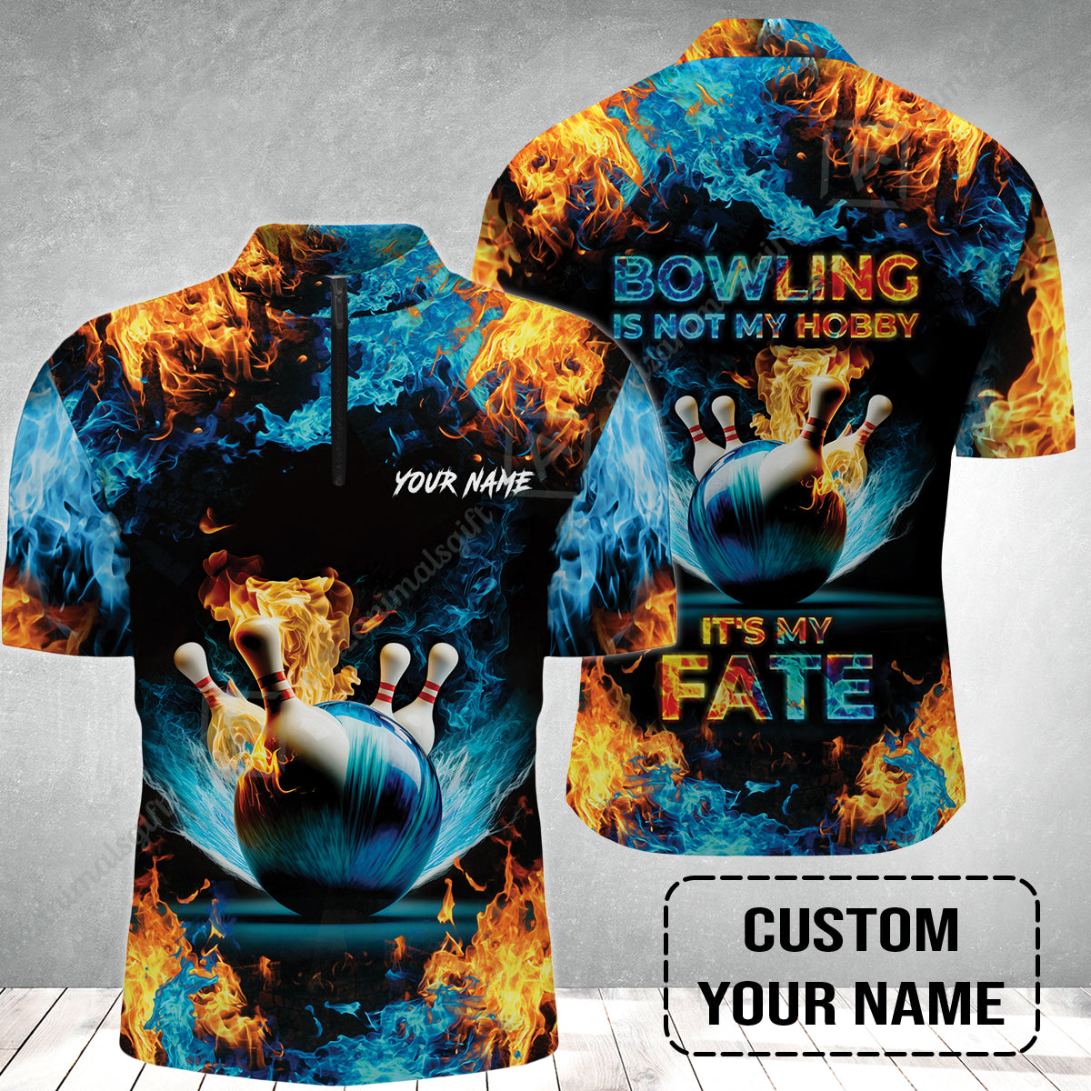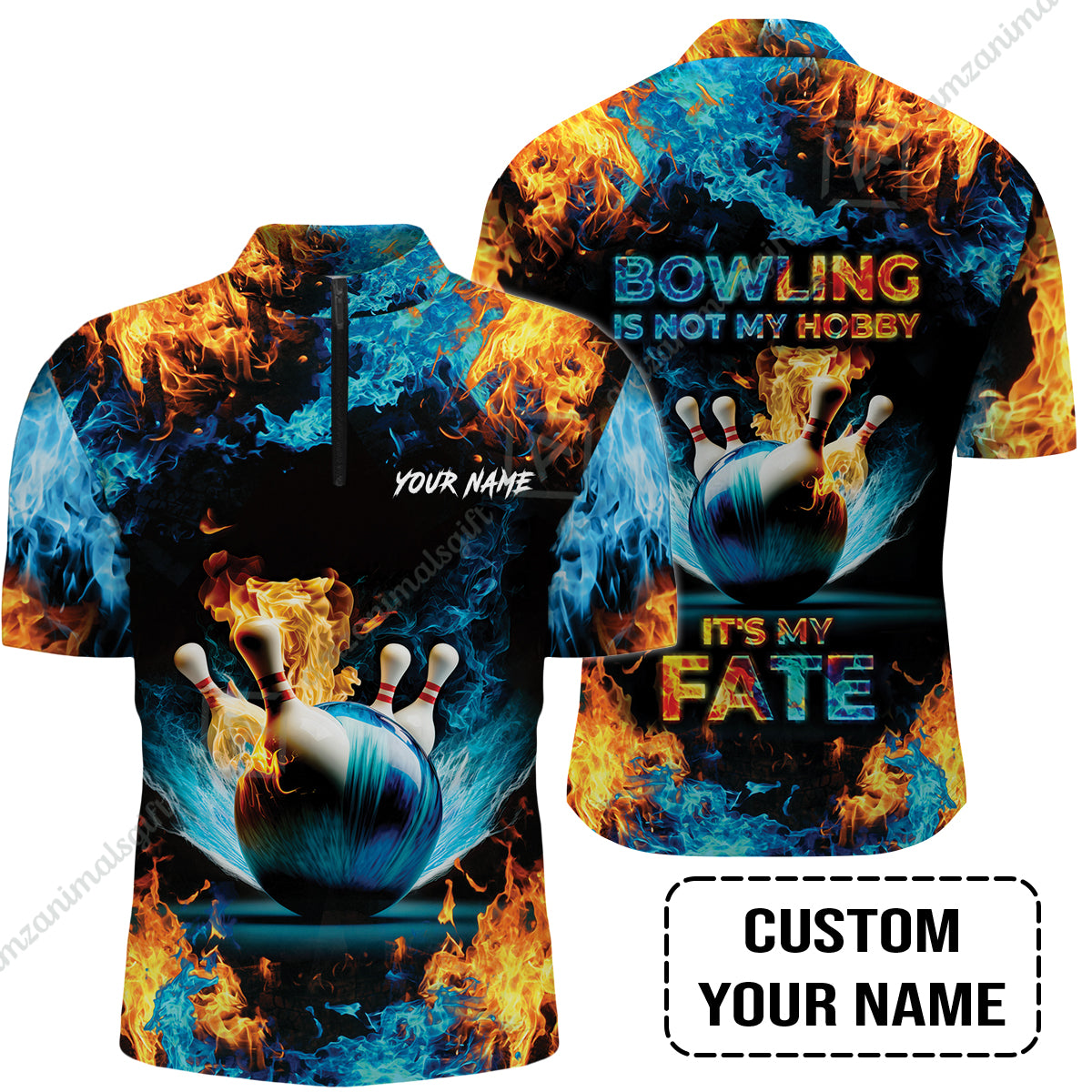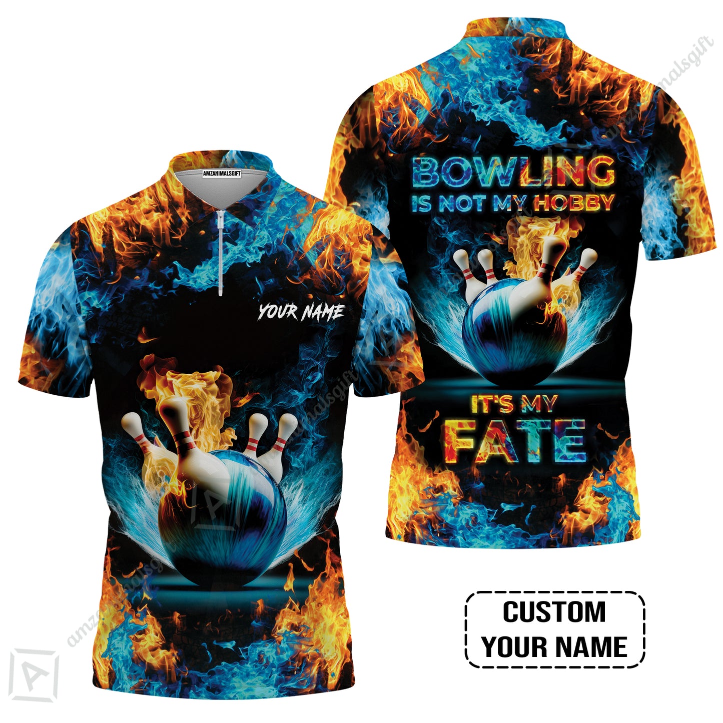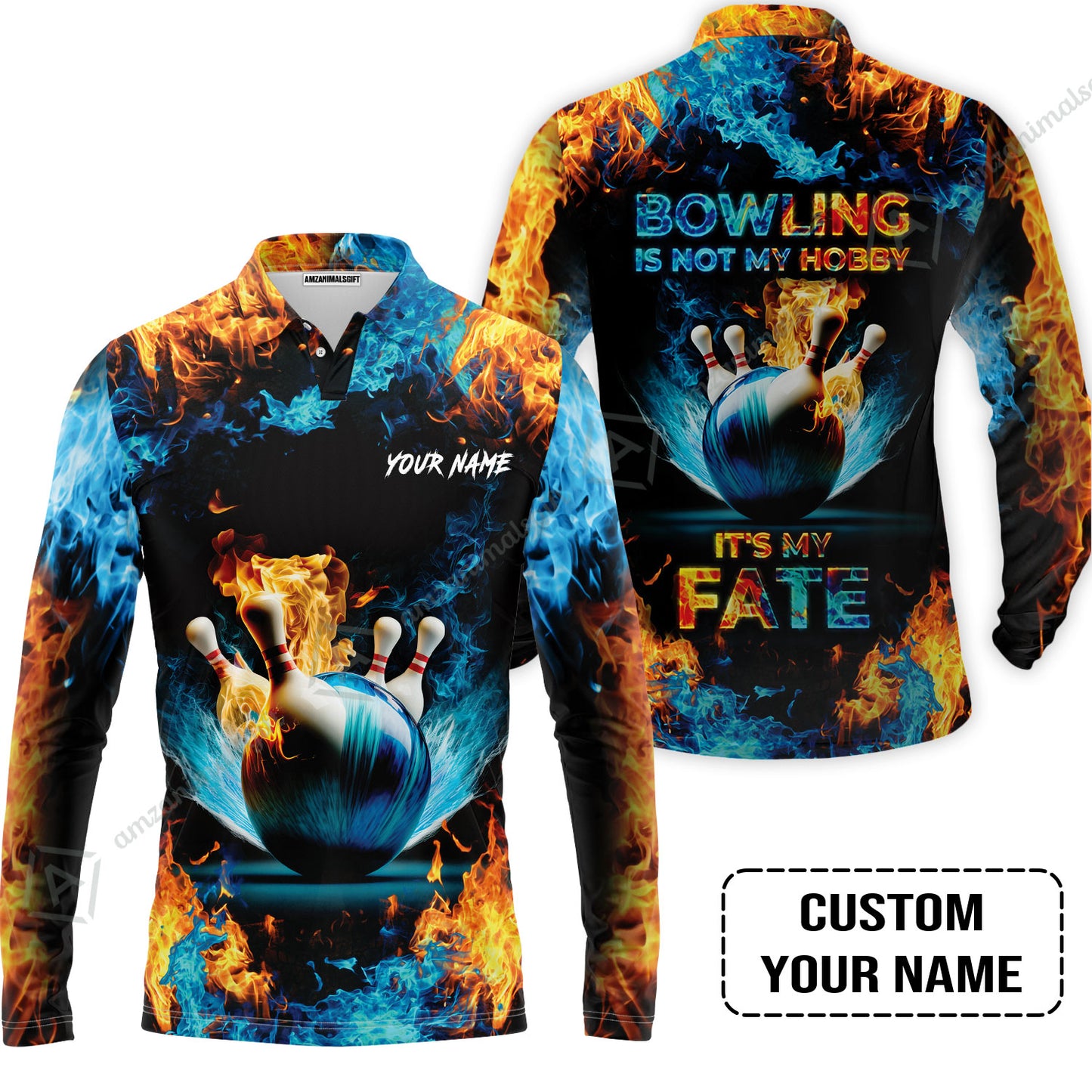 Bowling Custom Bowling Jersey - Custom Name Blue Bowling Ball And Pins On Fire Personalized Bowling Jersey