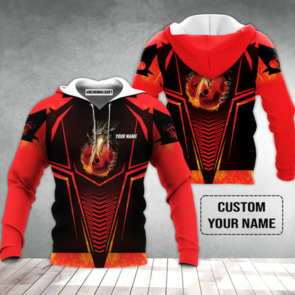 Bowling Custom Hoodie - Custom Name Dragon Fire Flame Personalized Bowling Hoodie