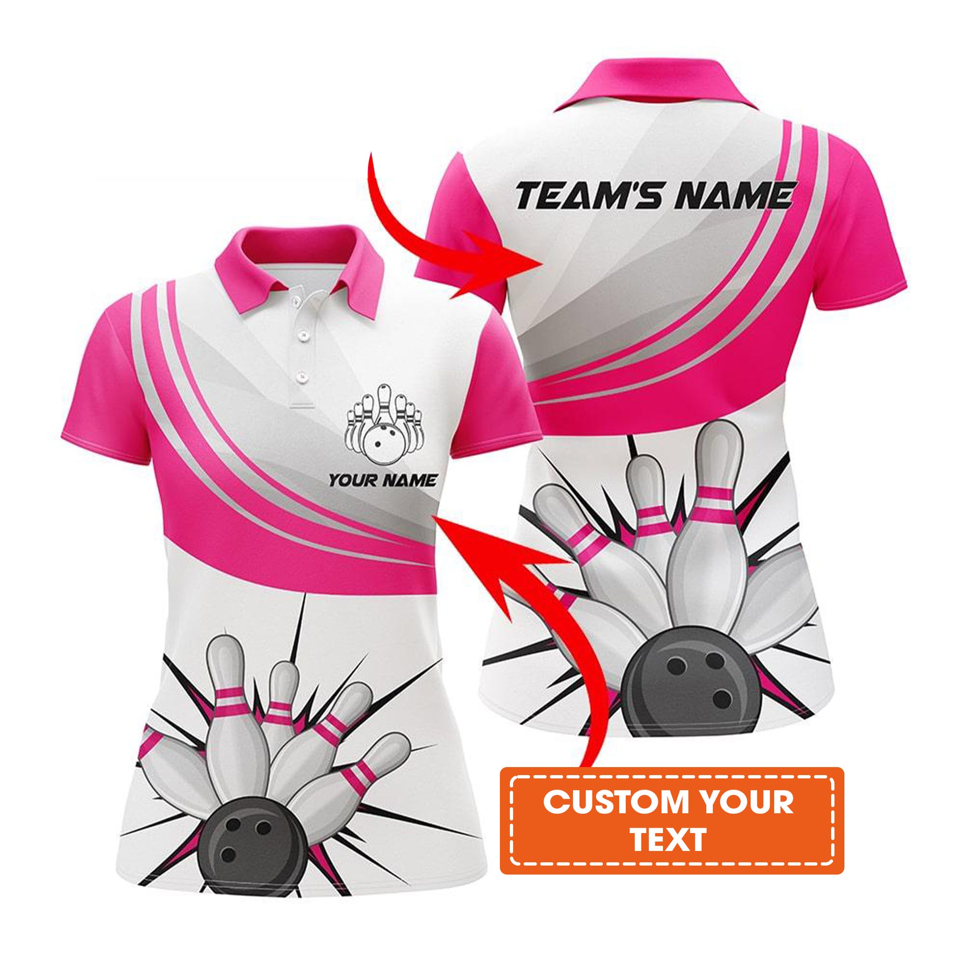 Bowling Custom Women Polo Shirt - Custom Name Pink Bowling Ball Pin Personalized Bowling Polo Shirt - Gift For Friend, Family, Bowling Lovers