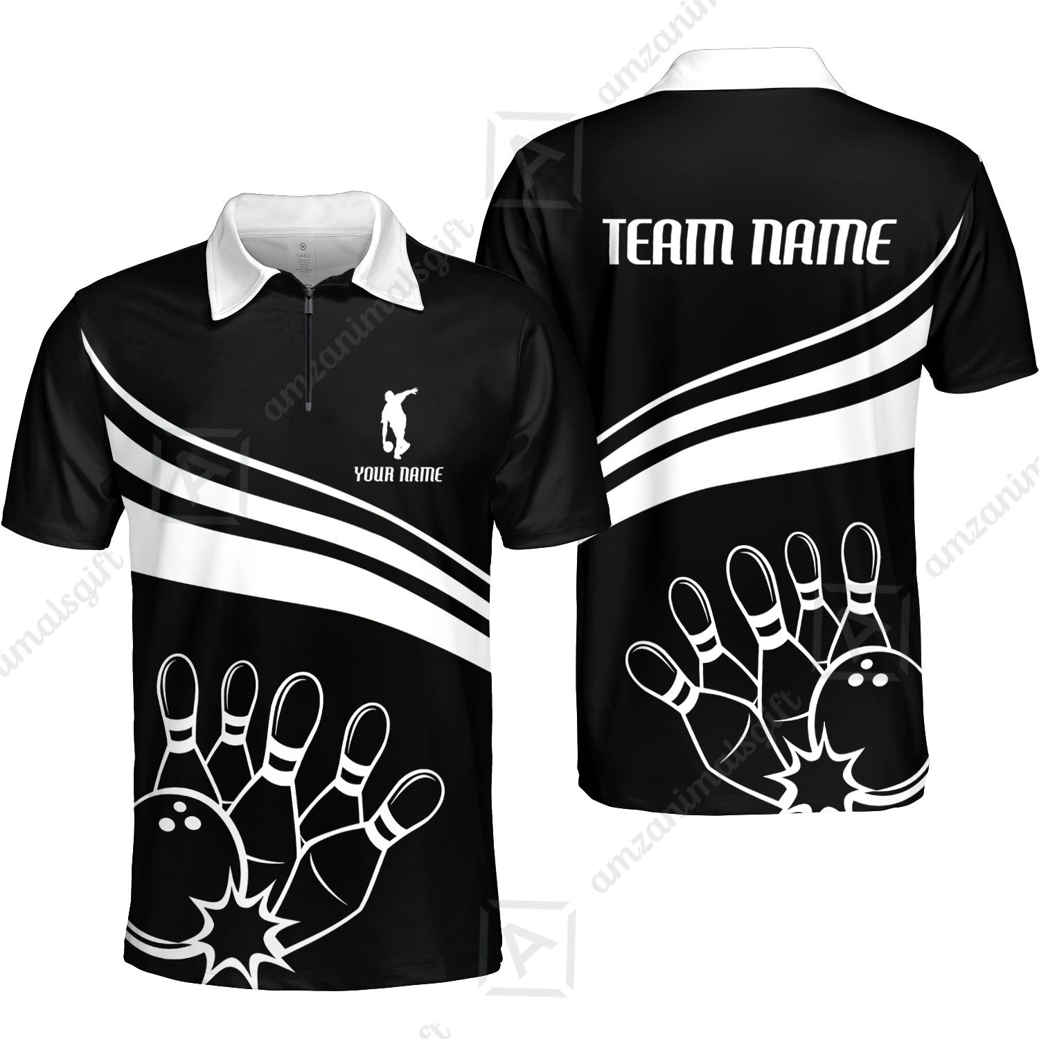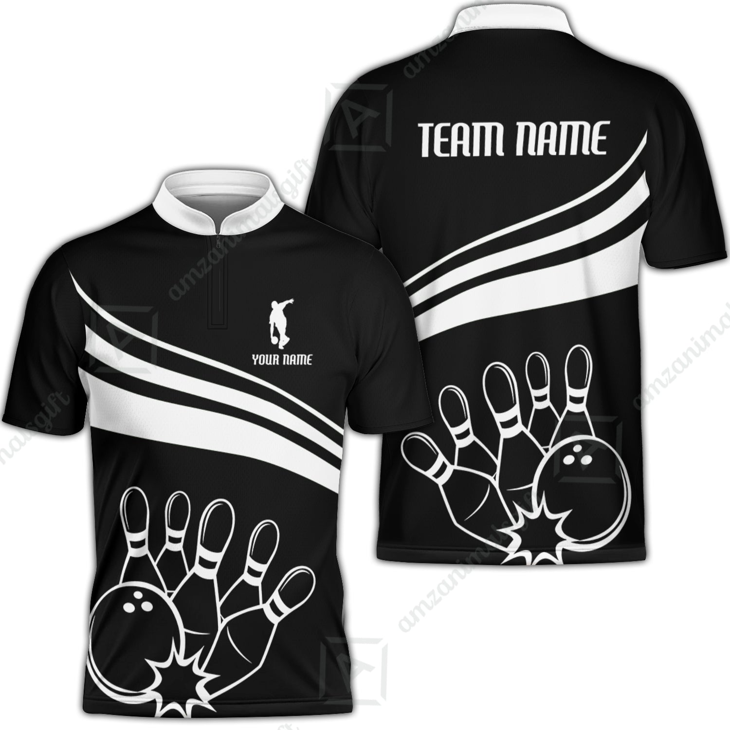Bowling Customized Jersey Black Shirt White Curve Bowling Tenpin Quarter Zip Shirt, Outfit For Bowlers, Bowling Team