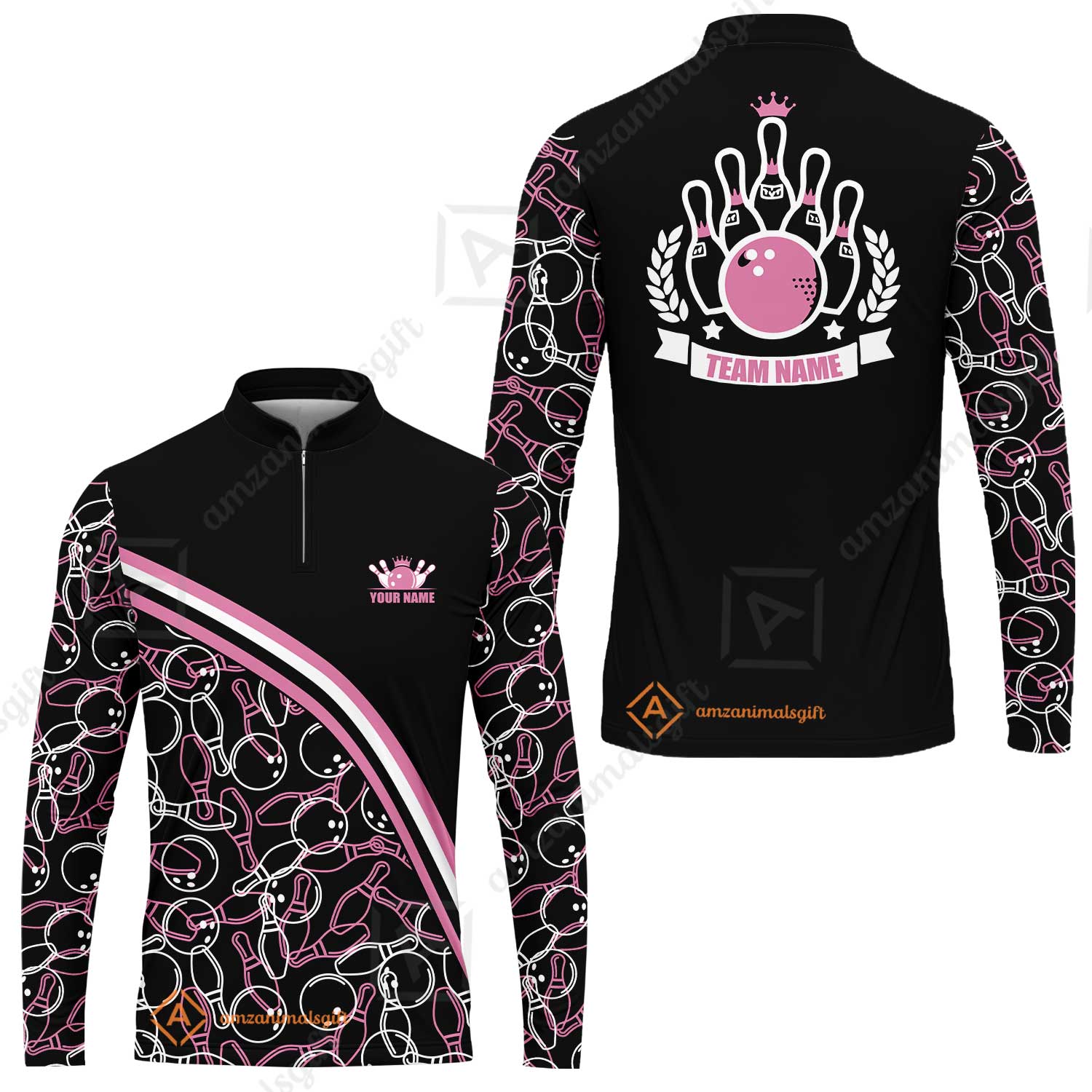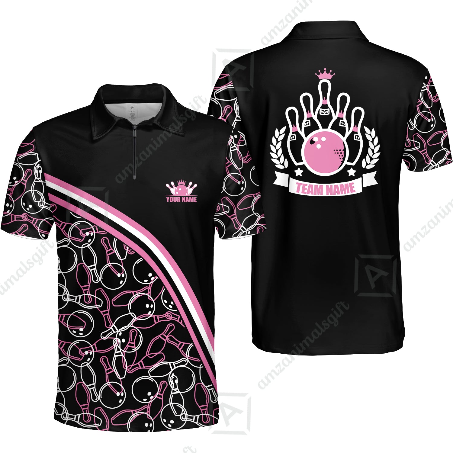 Bowling Customized Women Polo Shirt - Black Pink Bowling Pattern Personalized Bowling Polo Shirt - Gift For Friend, Family, Bowling Lovers