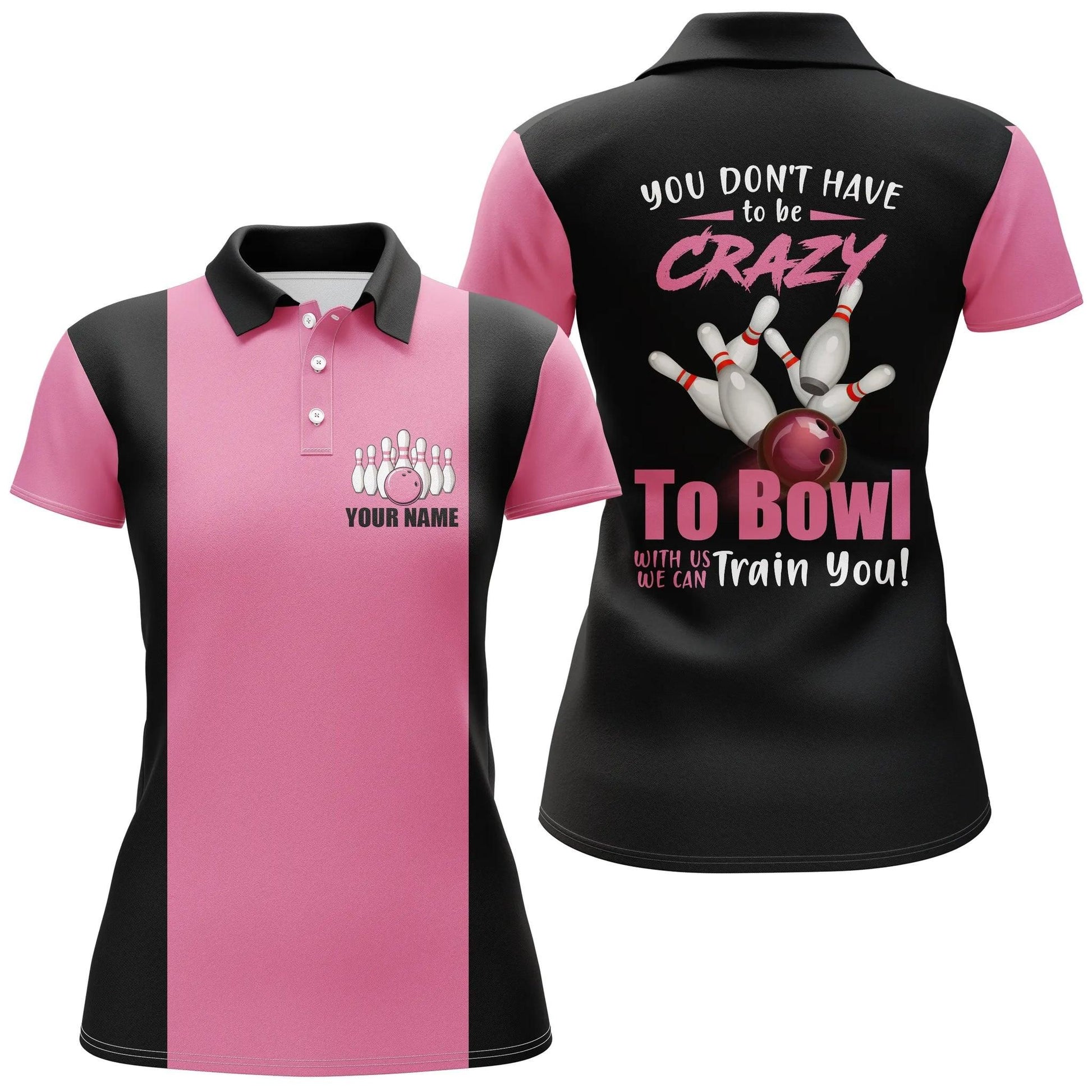 Bowling Customized Women Polo Shirt - Crazy Bowling Girl Polo Shirt, Personalized Black Pink Pattern Shirt - Gift For Lady, Bowlers, Bowling Lovers