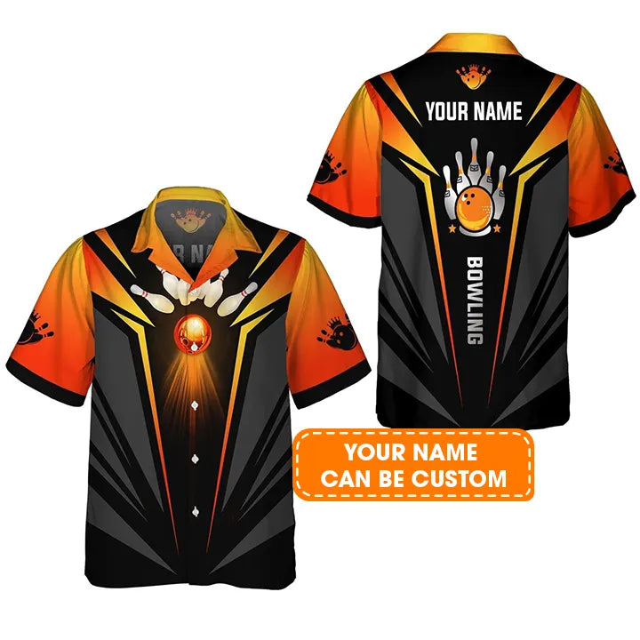 Bowling Hawaiian Shirt Custom Name - The Orange Bowling Ball in Flames Personalized Aloha Hawaiian Shirt - Gift For Friend, Family, Bowling Lovers