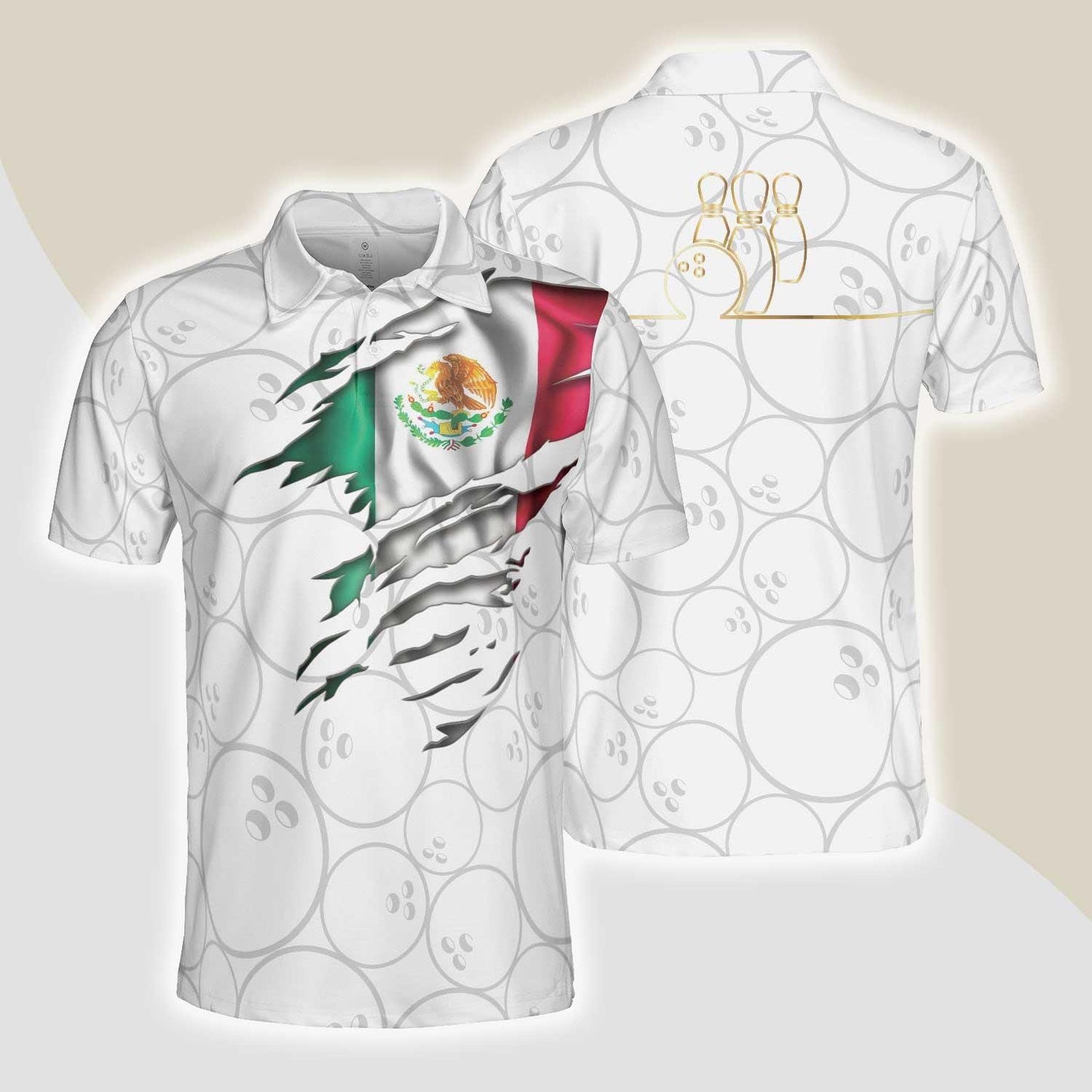 Bowling Men Polo Shirt - Bowling Mexico Flag White Personalized Bowling Polo Shirt - Gift For Friend, Family, Bowling Lovers