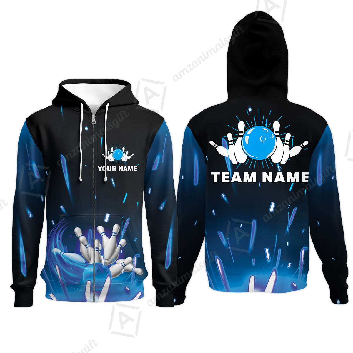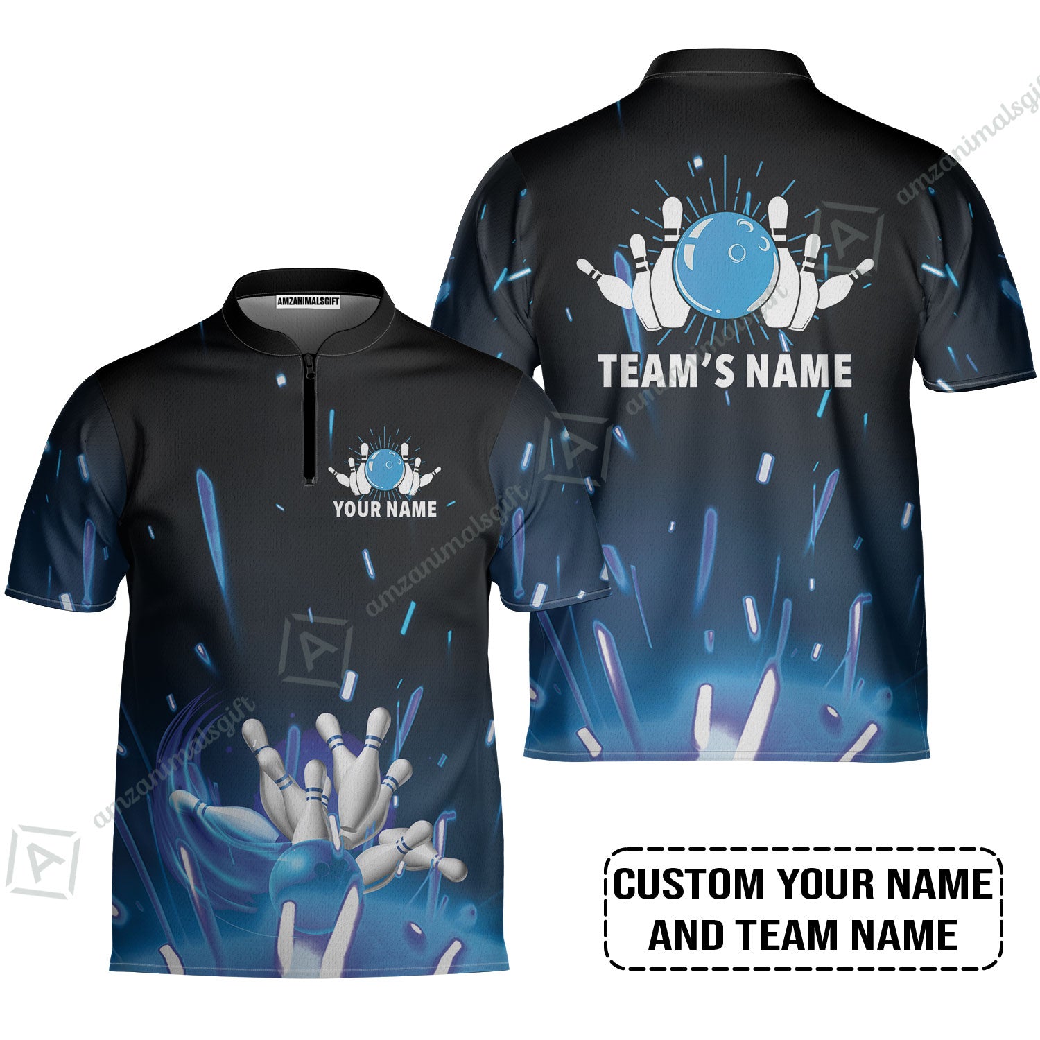 Bowling Men Polo Shirt Custom Name - Blue Bowling Personalized Bowling Polo Shirt - Gift For Friend, Family, Bowling Lovers