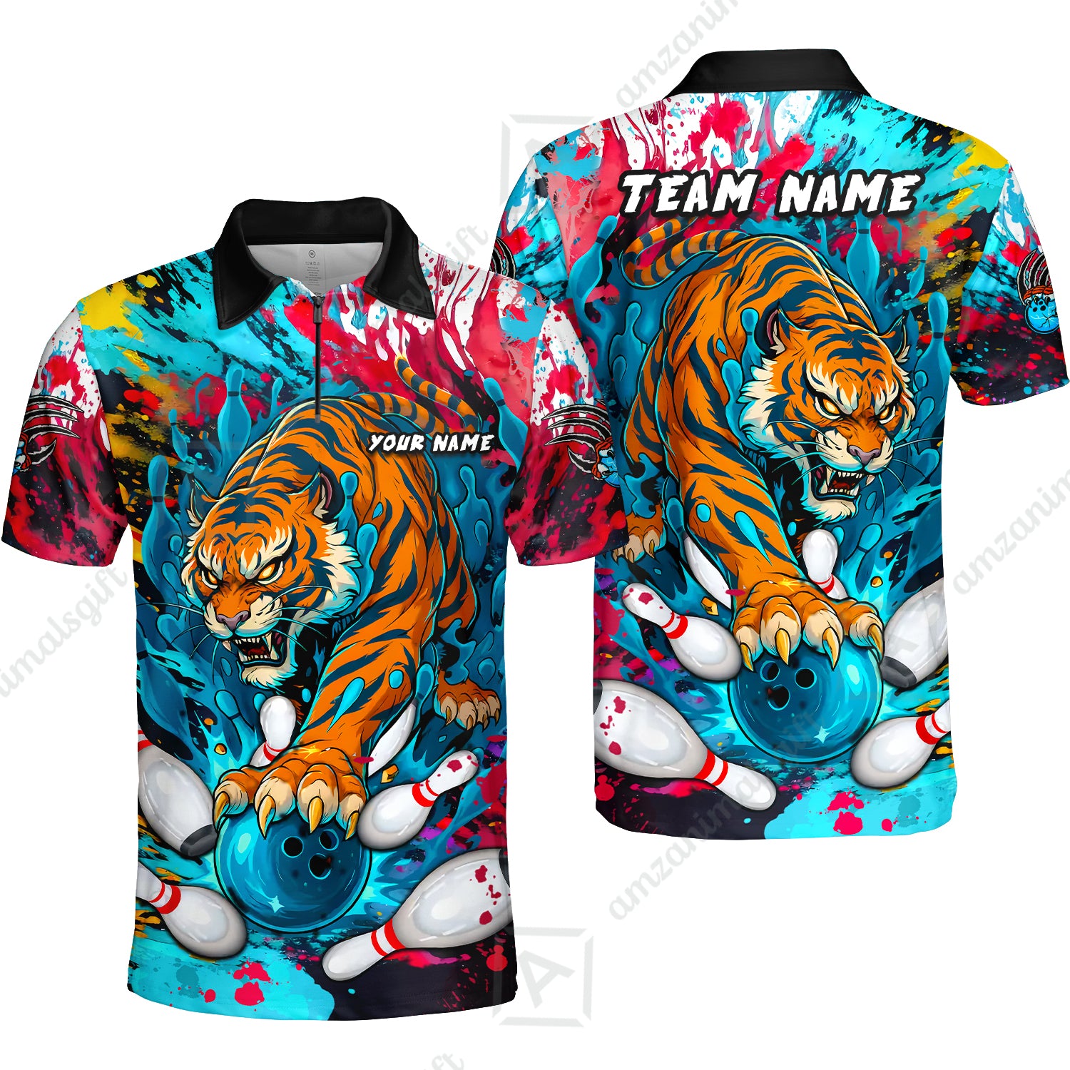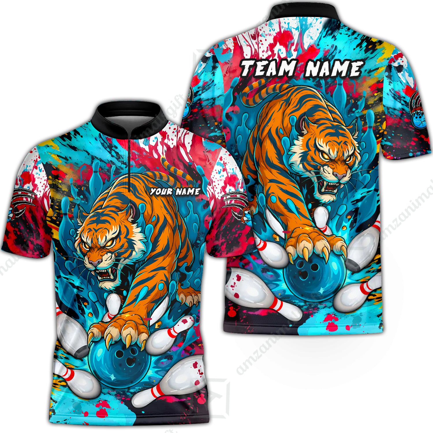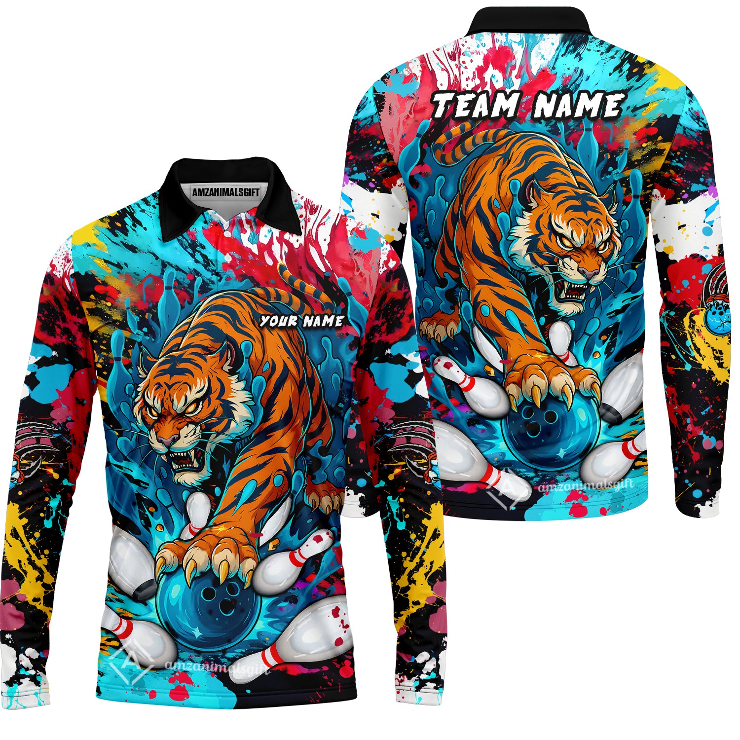 Custom Bowling Team Shirt Roaring Tiger Colorful, Bowling uniforms, Bowling Shirt Personalized Name And Team Name