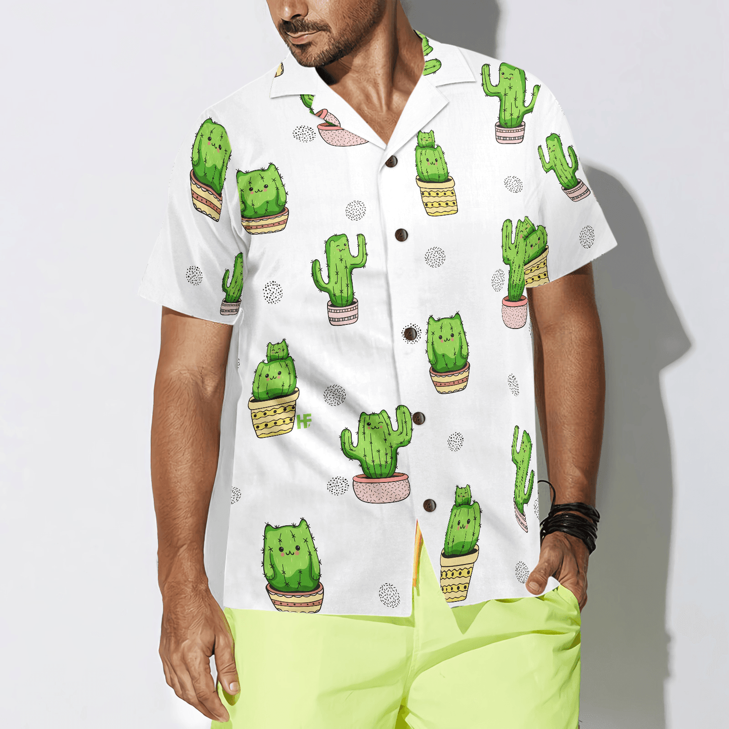 Cactus Cats Aloha Hawaiian Shirt For Summer, Colorful Shirt For Men Women, Perfect Gift For Friend, Team, Family, Cat Lovers