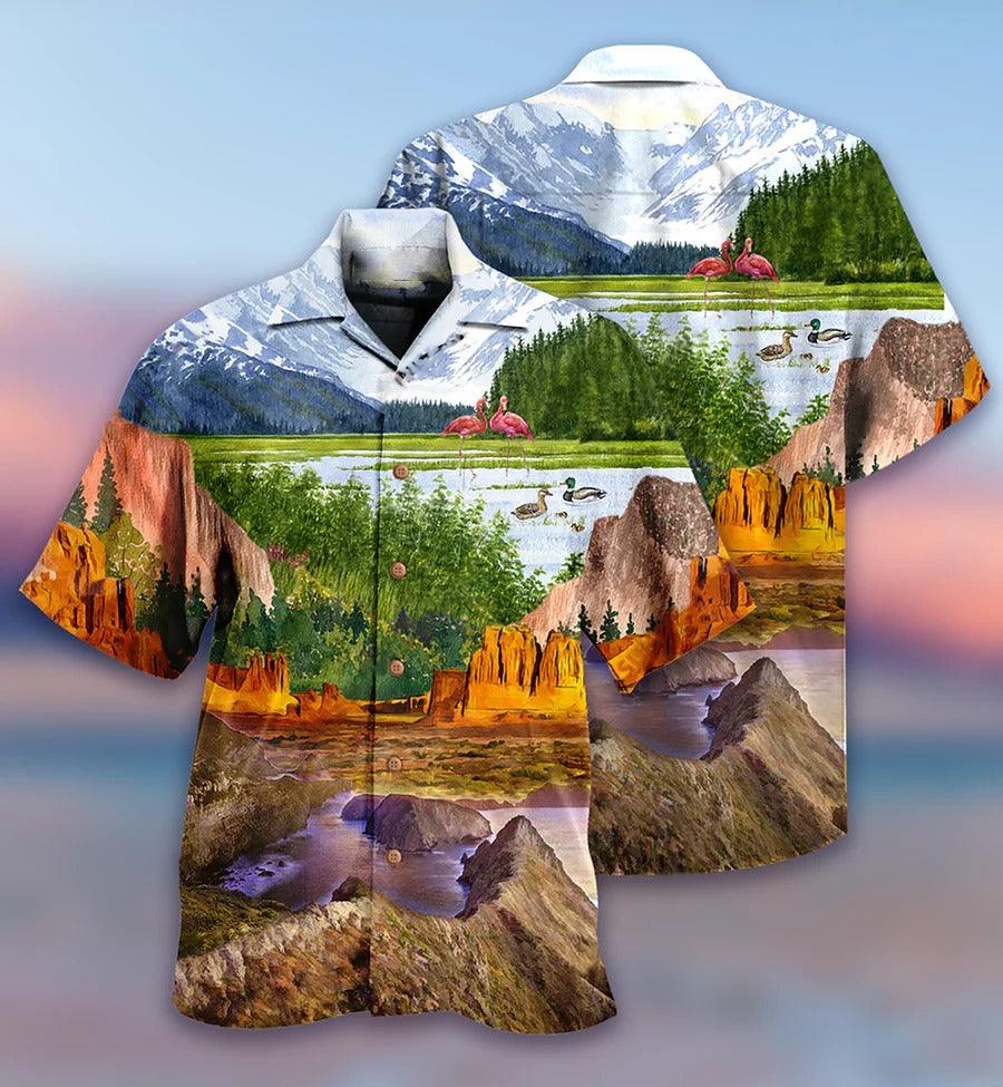 Camping Hawaiian Shirt, Camping Peaceful Nature, Flamingo Aloha Shirt For Men And Women - Perfect Gift For Camping Lovers, Flamingo Lovers