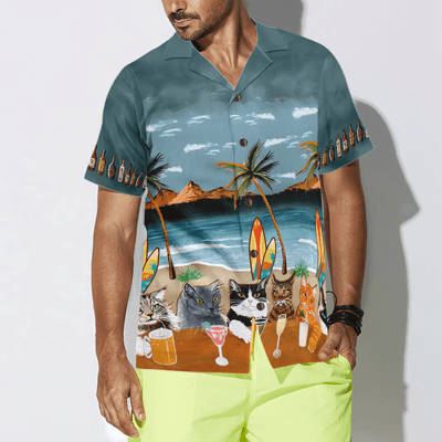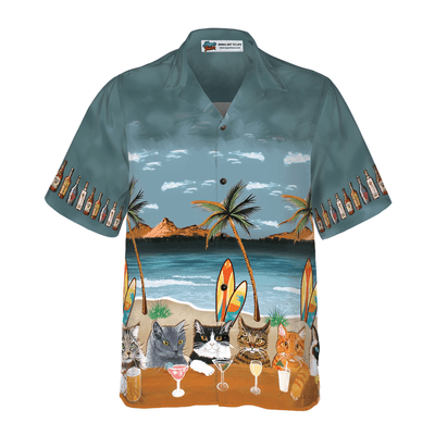 Cat Hawaiian Shirt, Cat Beer Alcohol, Beach Party Aloha Shirt For Men - Perfect Gift For Men, Cat Lovers, Husband, Boyfriend, Friend, Family