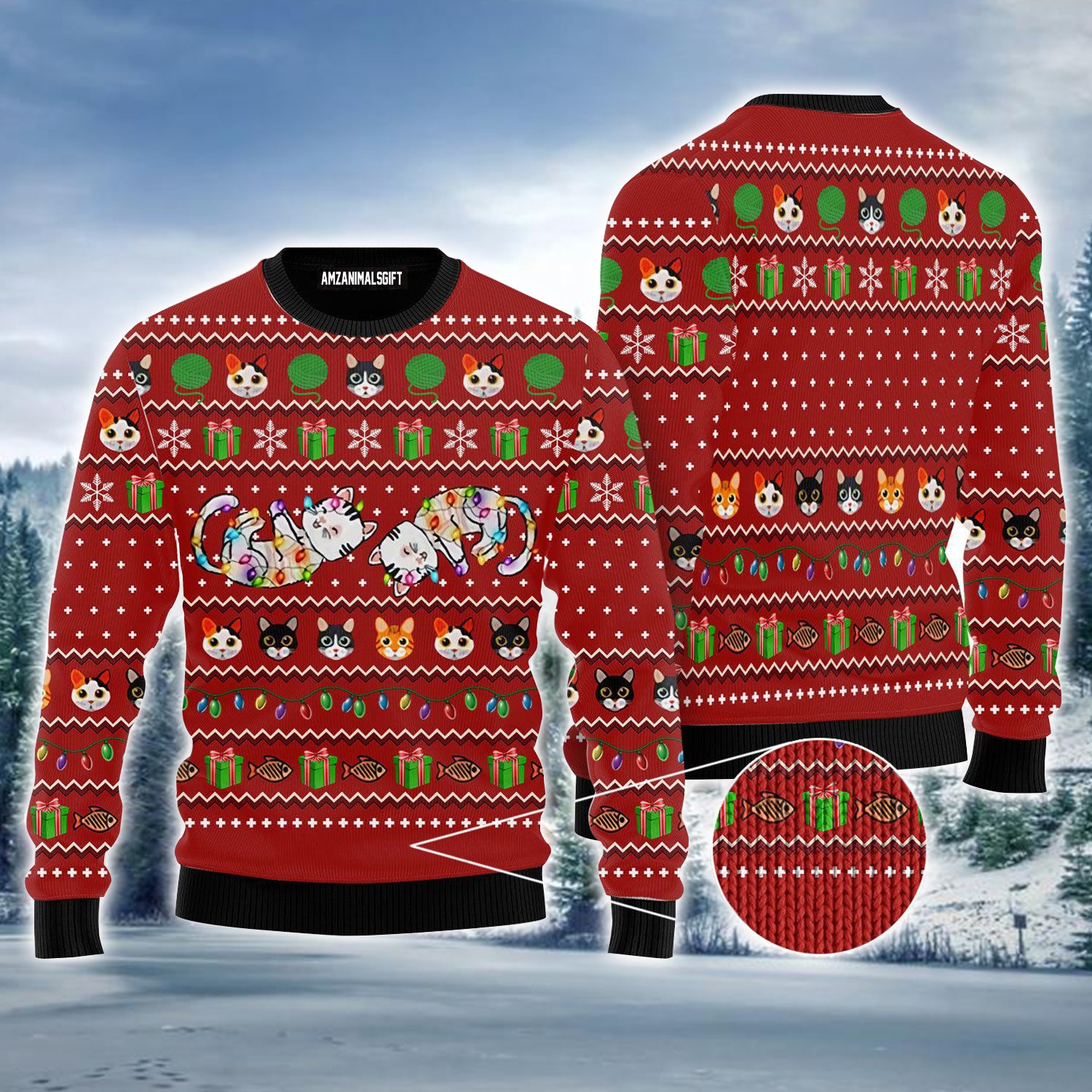 Cat Light Ugly Sweater, Christmas Ugly Sweater, Funny Cat Christmas Ugly Sweater For Men & Women - Perfect Gift For Christmas, Cat Lovers