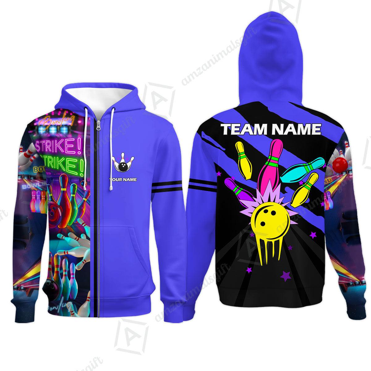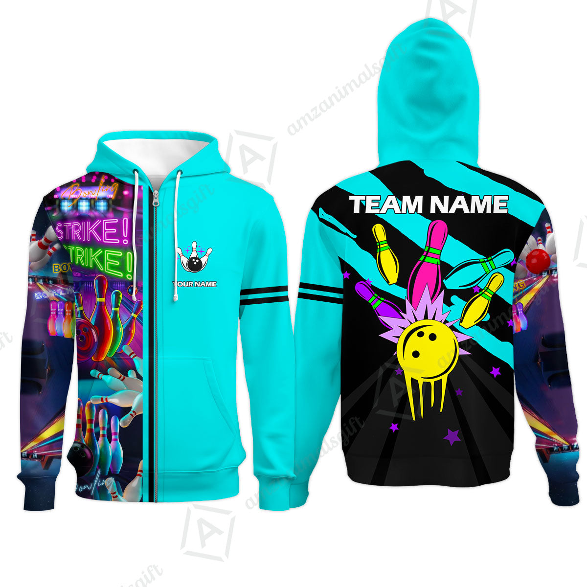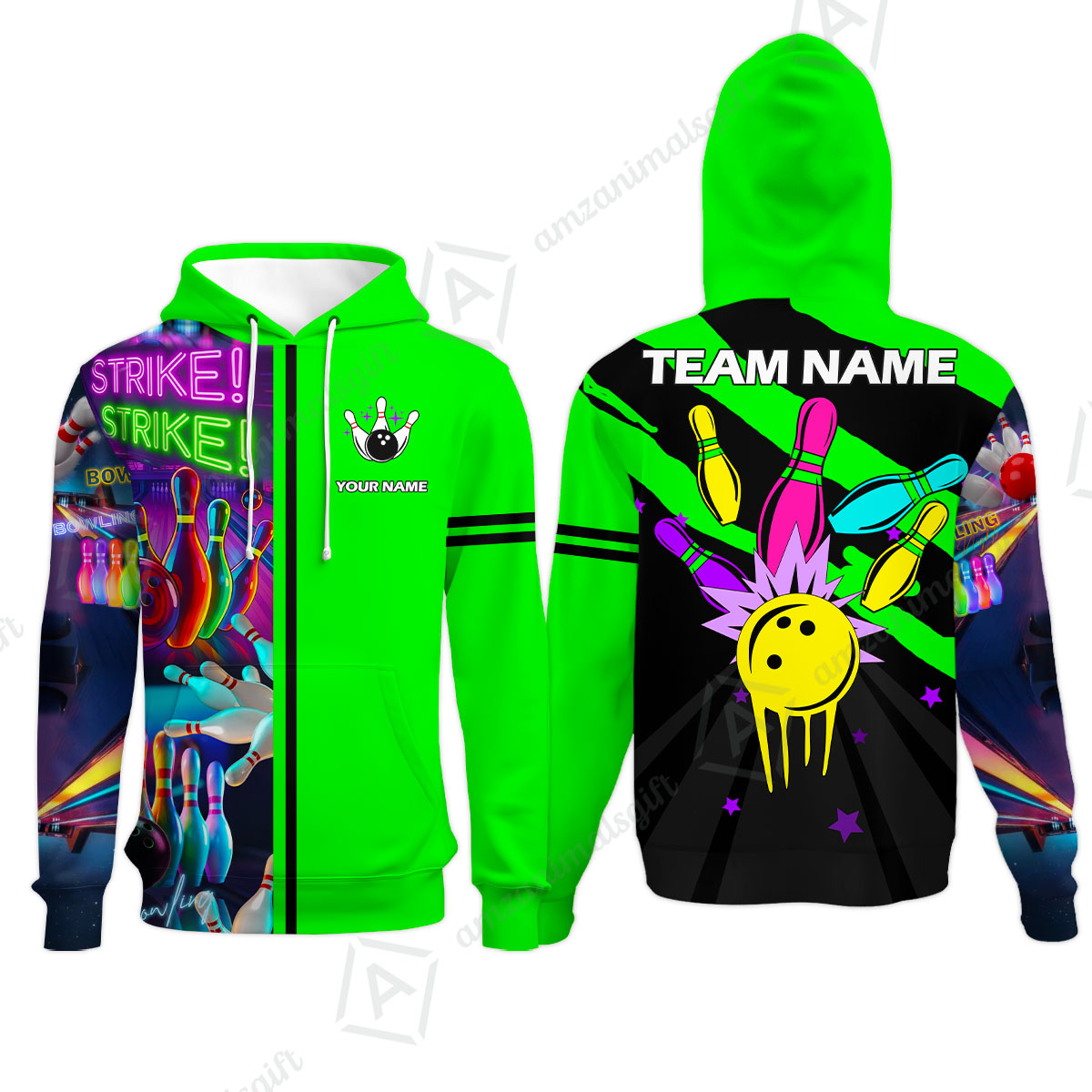 Custom Bowling Team Jersey Neon Bowling Strike Polo Shirts, Bowling Team Uniforms, Personalized Name And Team Name