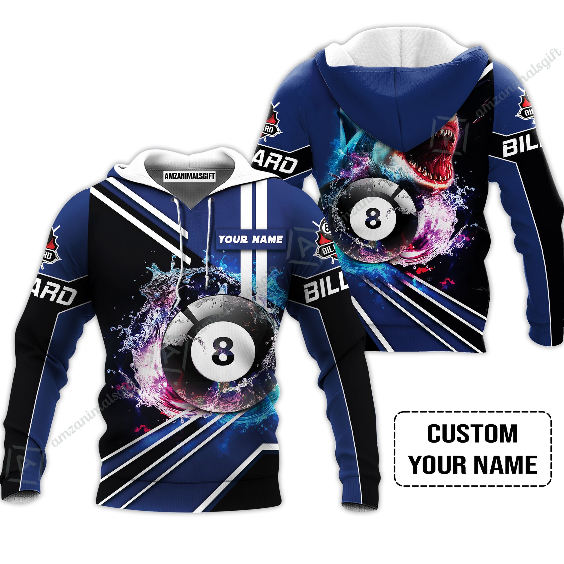 Custom Billiard Men Polo Shirt - Shark Billiard Team Pool 8 Ball Personalized Name Polo Shirt