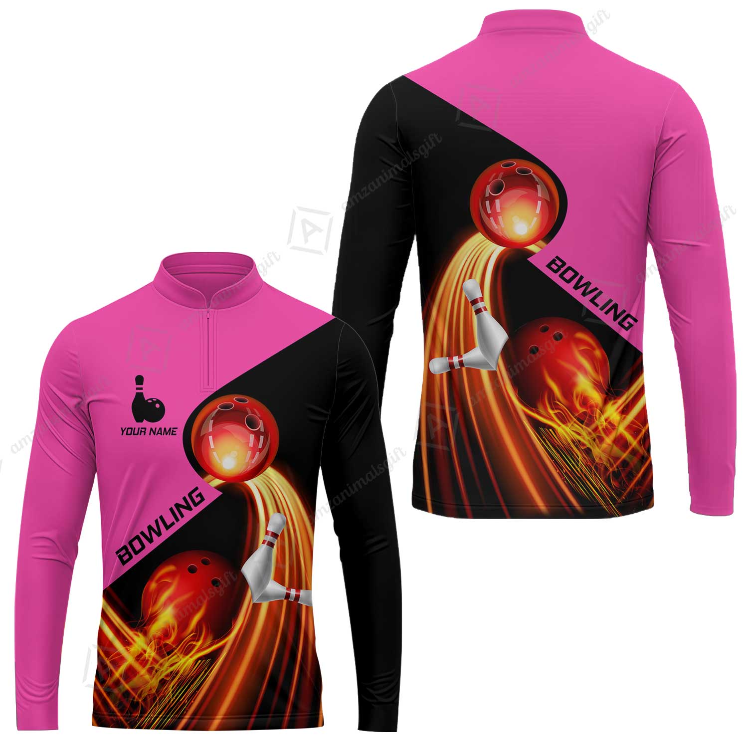 Custom Bowling Long Sleeve Jersey - Amazing Fire Bowling Ball Pattern Personalized Name Hawaiian Shirt For Men & Women, Bowling Lover