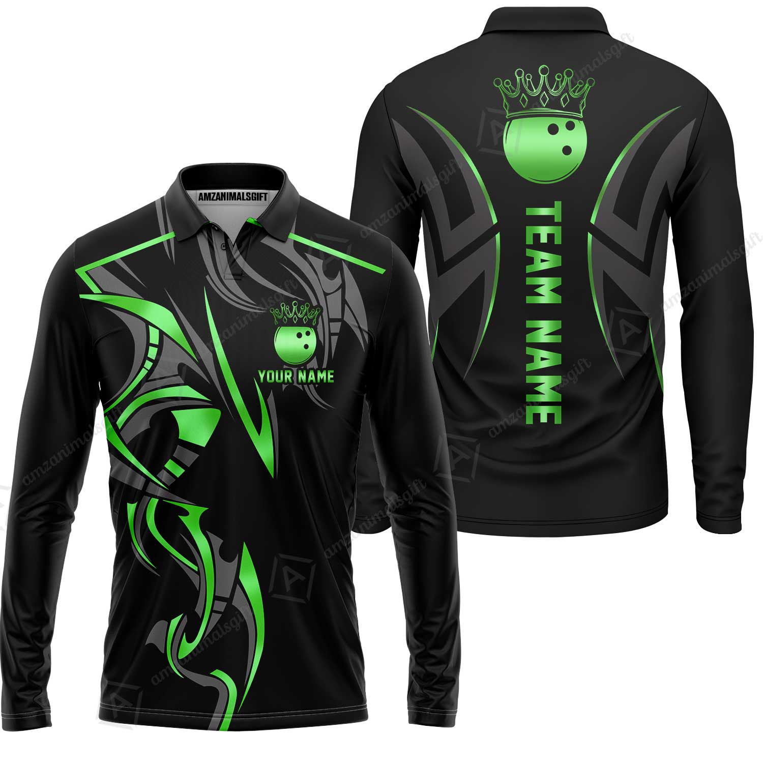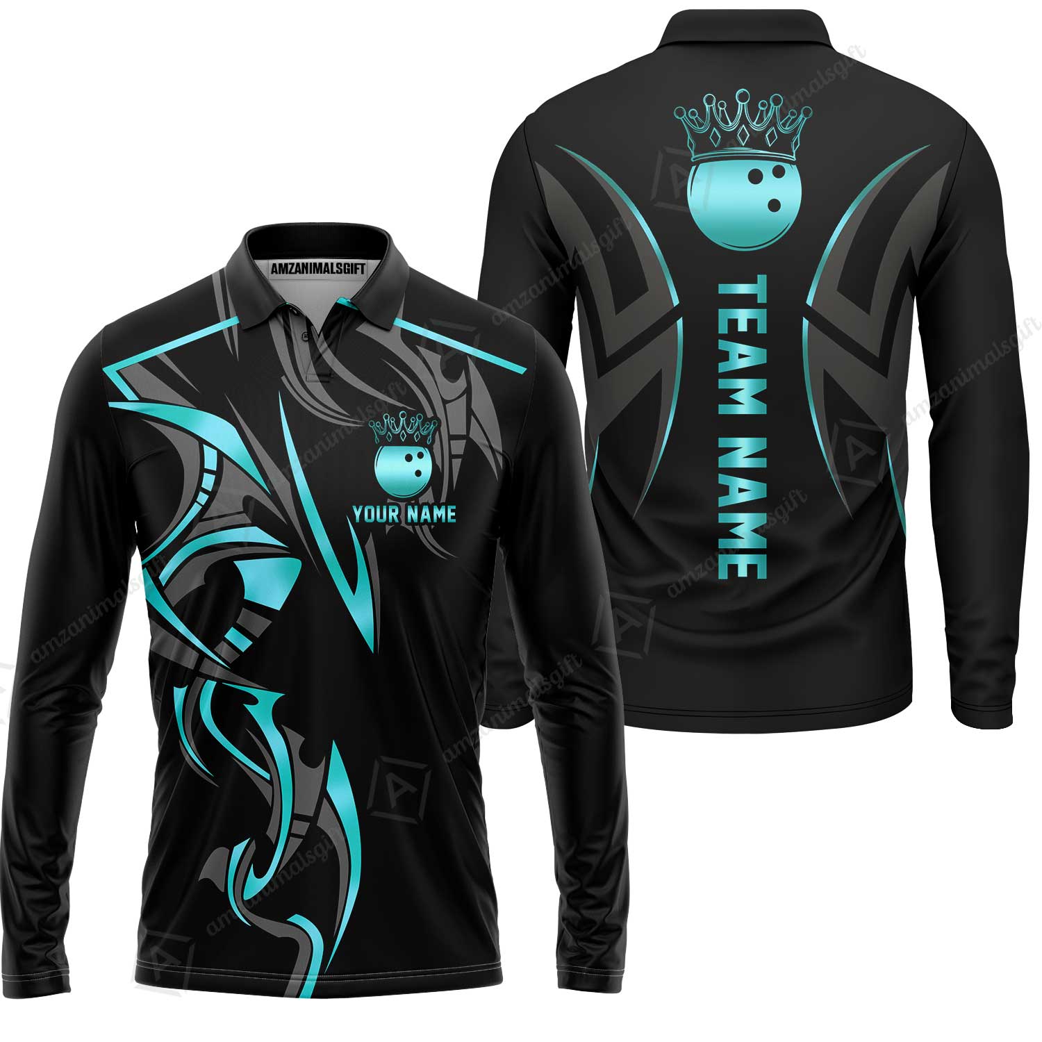 Custom Bowling Long Sleeve Polo Shirt, Bowling Uniforms Quarter-Zip Polo, Bowling Ball Crown Multicolor Options Personalized Name And Team Name