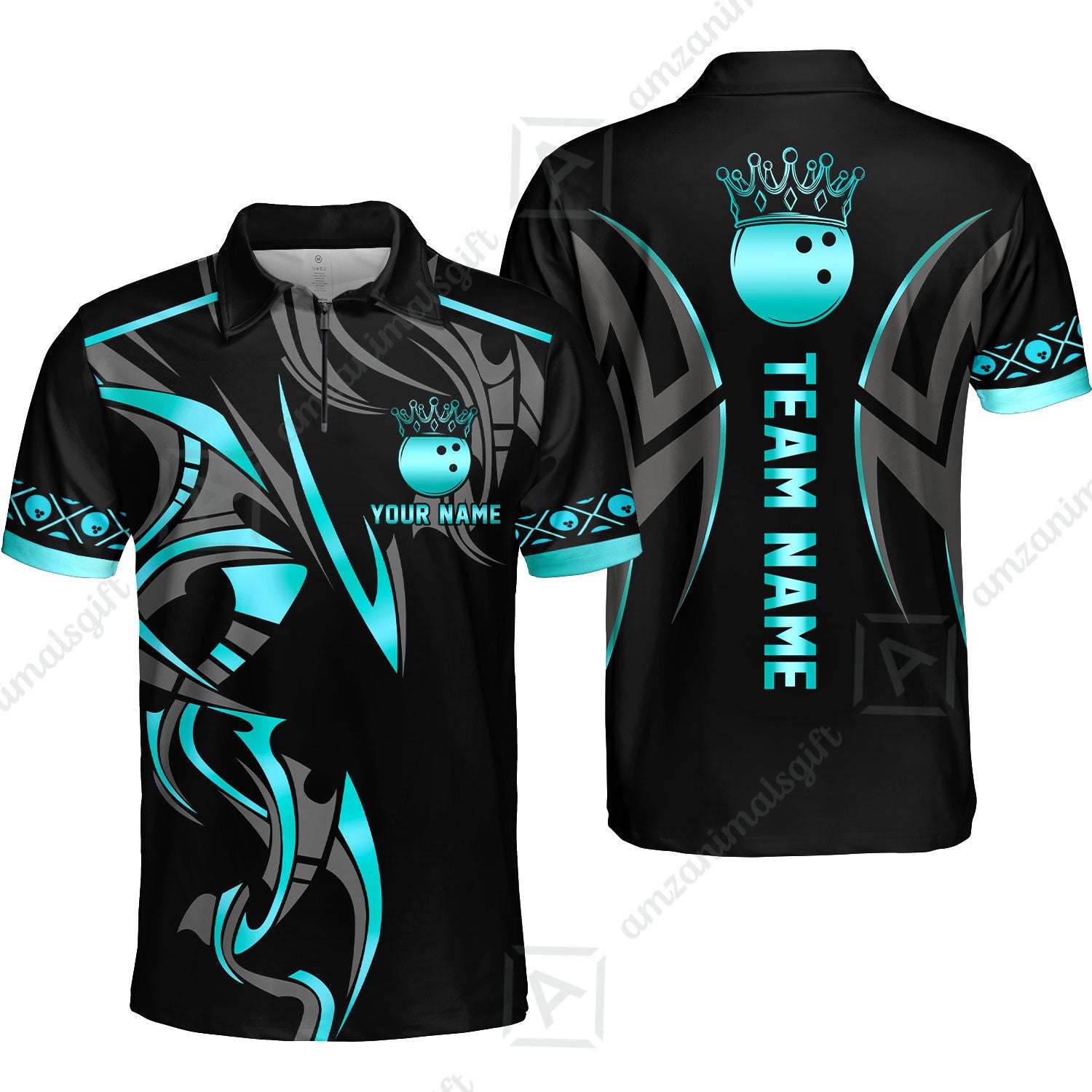 Custom Bowling Quater-Zip Polo Shirt, Bowling Uniforms Quarter-Zip Polo, Bowling Ball Crown Multicolor Options Personalized Name And Team Name