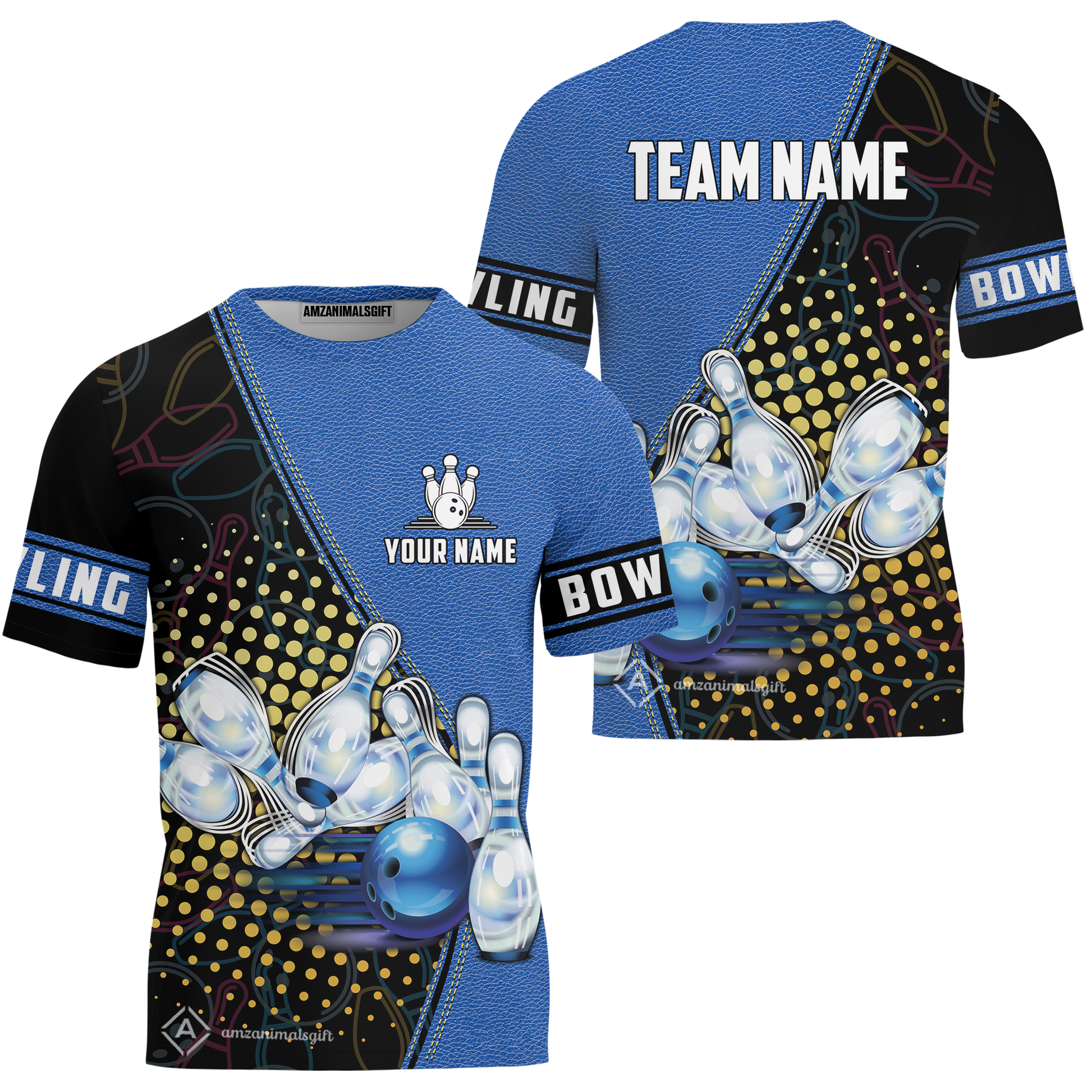 Custom Bowling T-Shirt - Black And Blue Bowling Ball Pattern Personalized Name T-Shirt