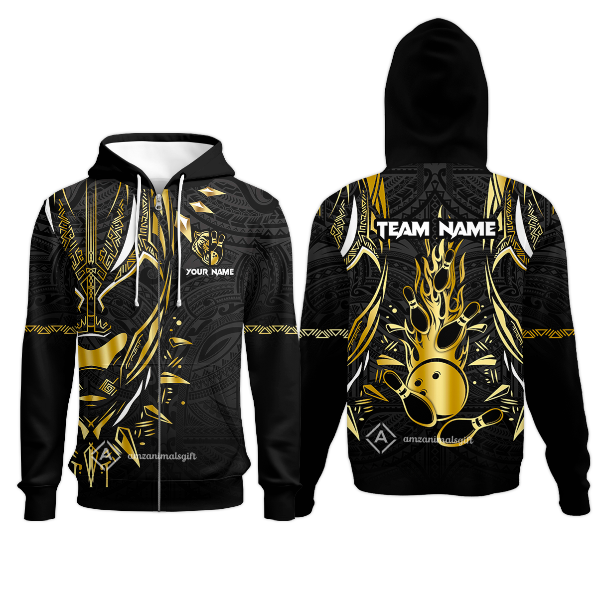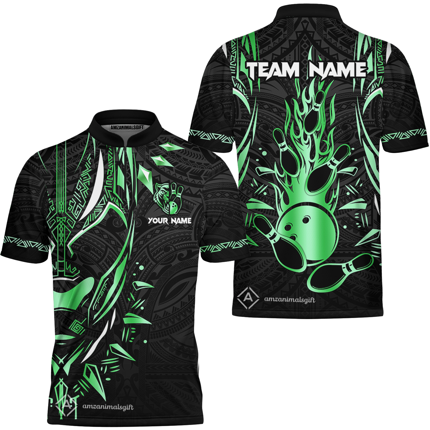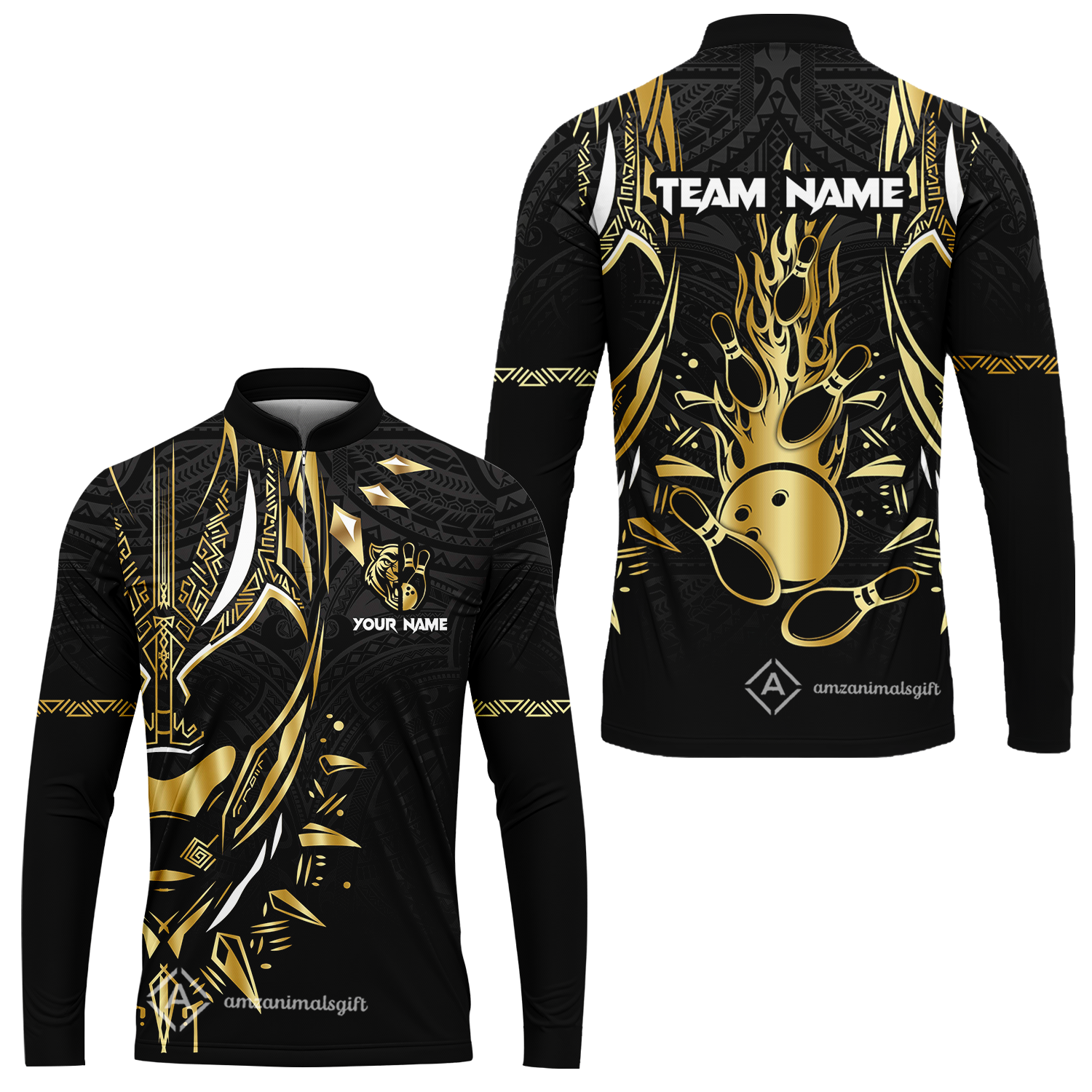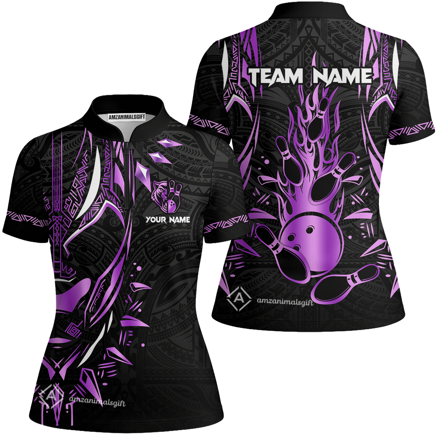 Custom Black Bowling Team Jersey, Panther Forever Bowling Jersey Multicolor Polo Quarter-Zip Shirts, Custom Bowling Uniforms Jerseys