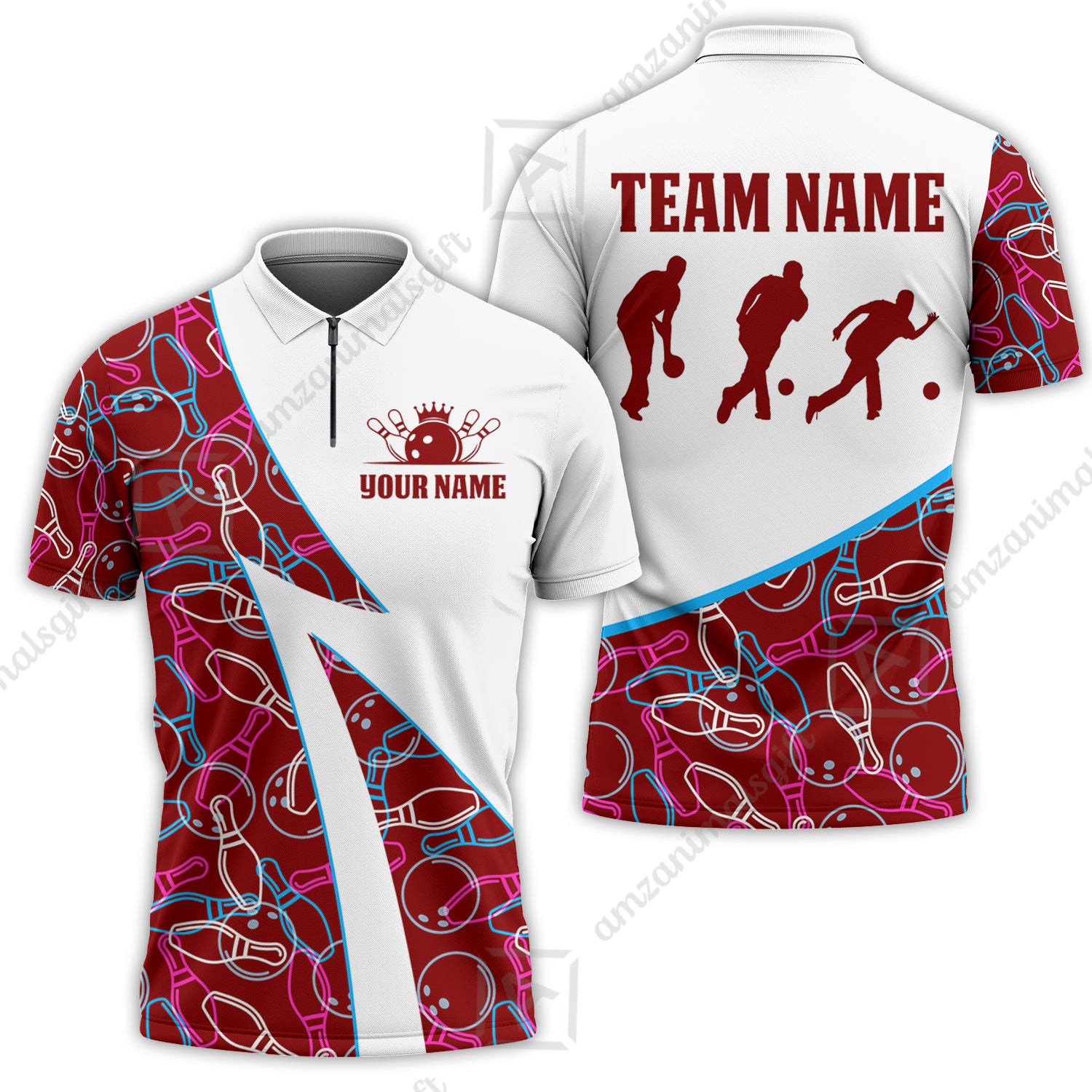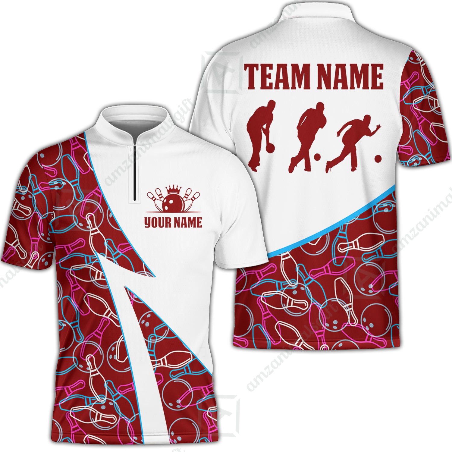 Custom Bowling Team Bowling Jersey, Neon Pattern Bowling Jersey With Player Silhouettes Multicolor Polo Quarter-Zip Shirts, Custom Bowling Uniforms Jerseys