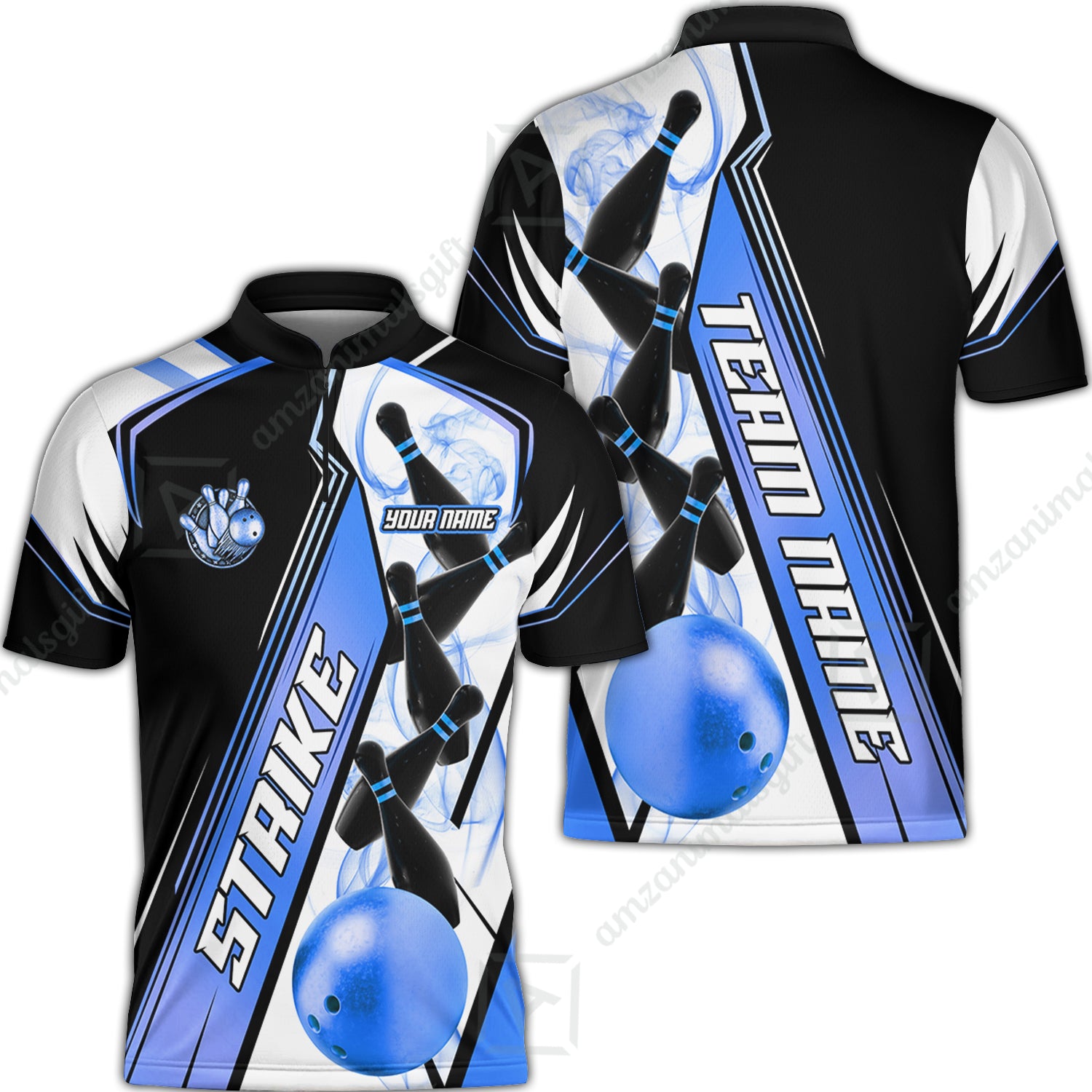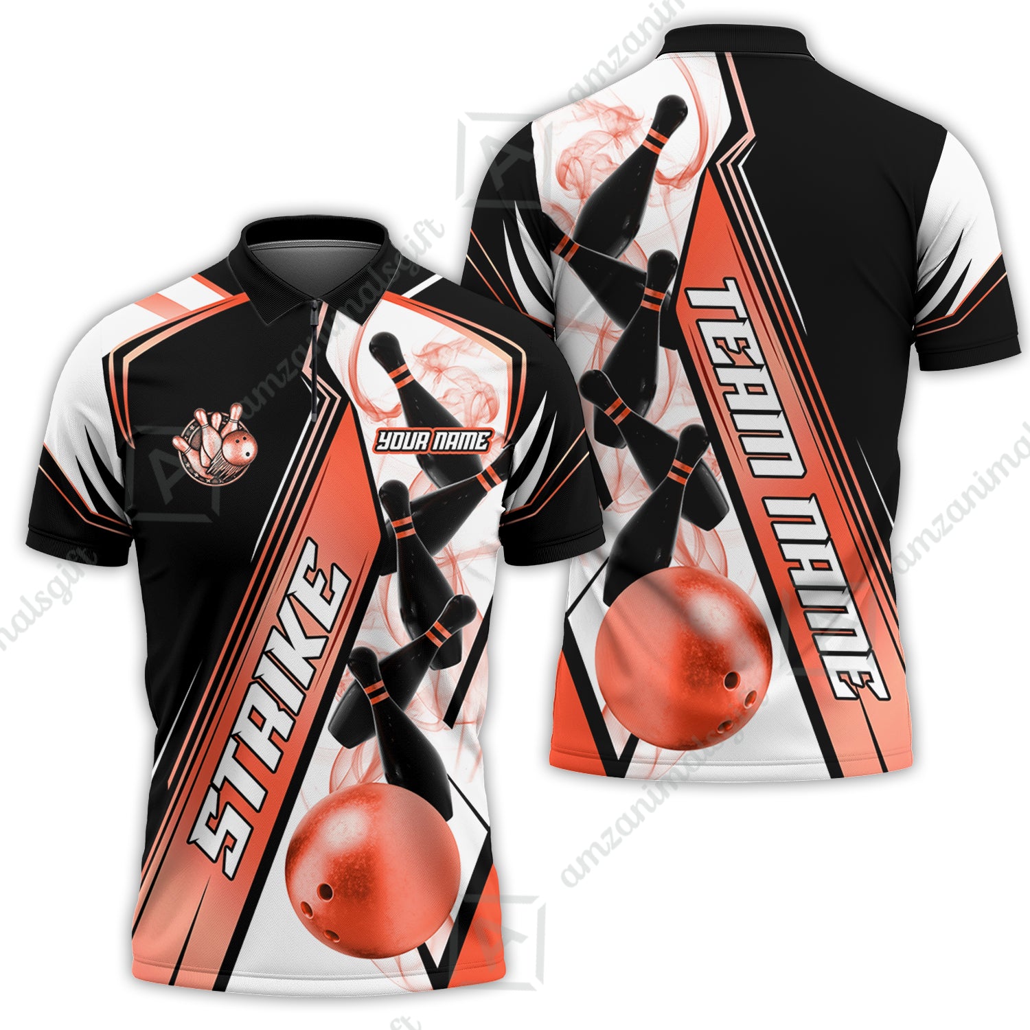 Custom Bowling Team Jersey, Strike On Bowling Jersey Multicolor Polo Quarter-Zip Shirts, Bowling Uniforms Jerseys, Custom Name And Team Name