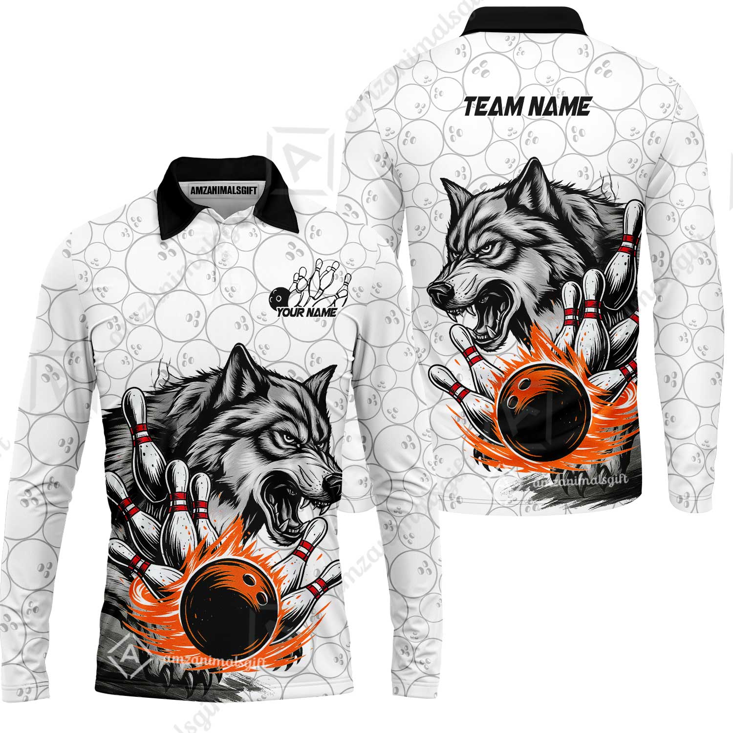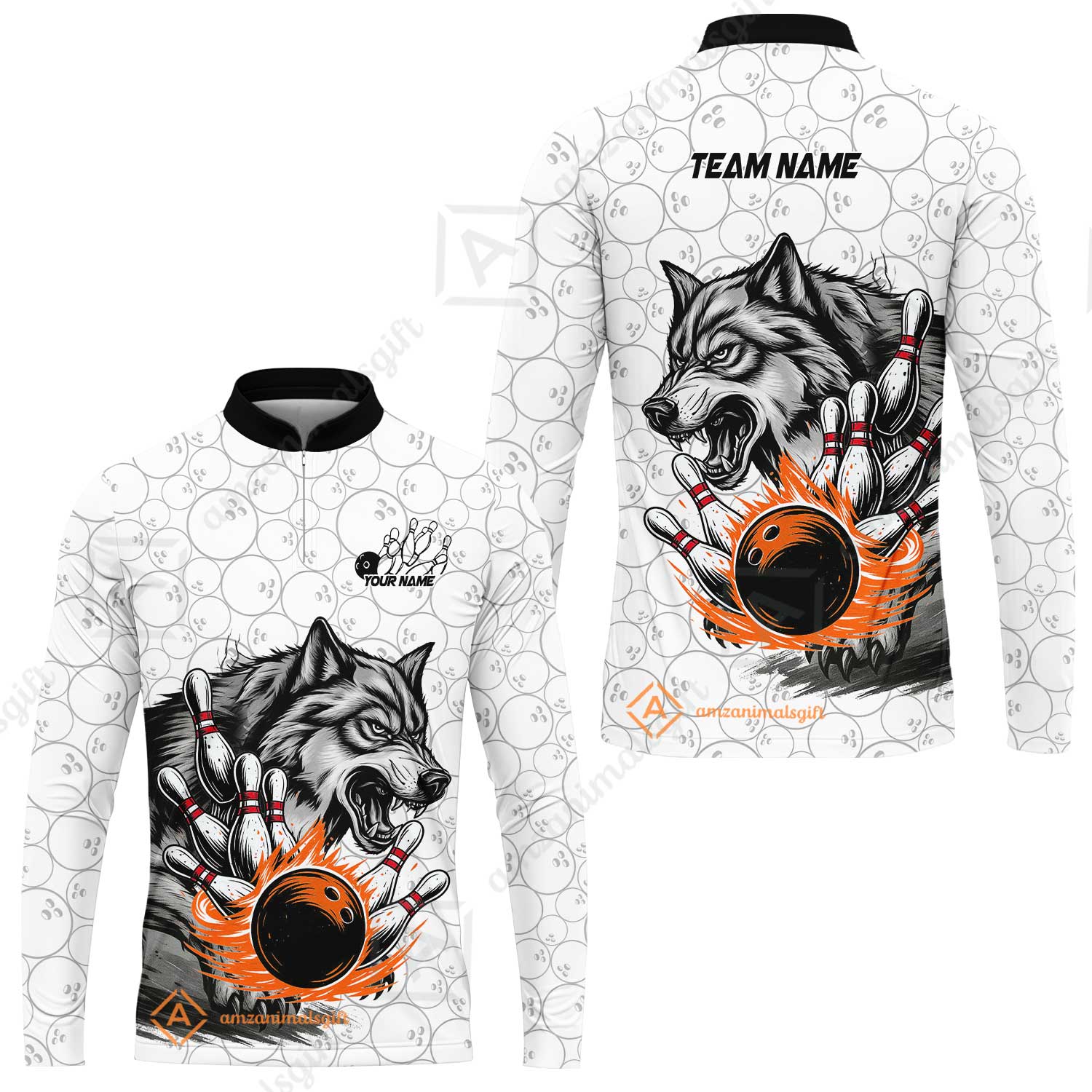 Custom Bowling Team Jersey, Wolf Strike Bowling Jersey Multicolor Polo Quarter-Zip Shirts, Custom Bowling Uniforms Jerseys
