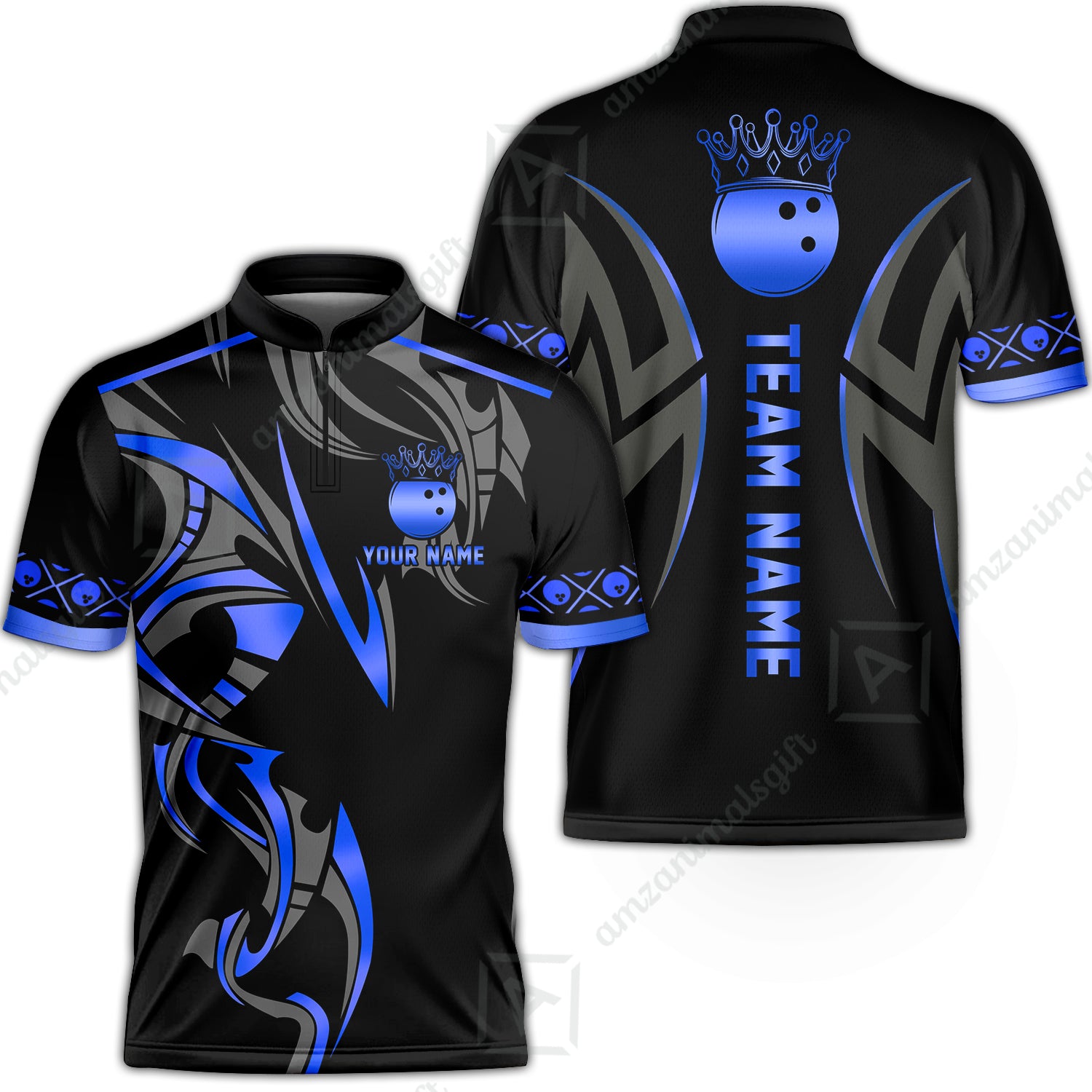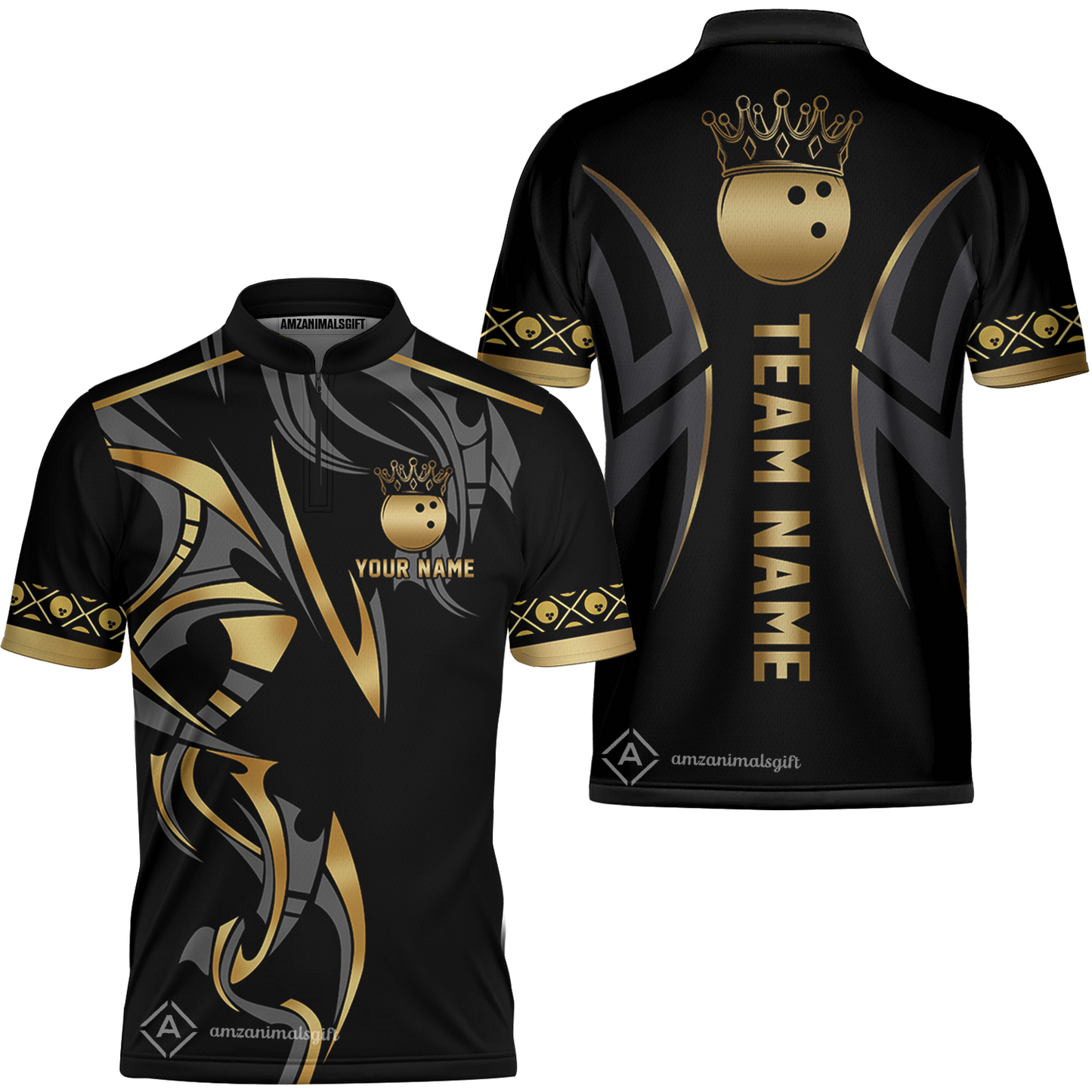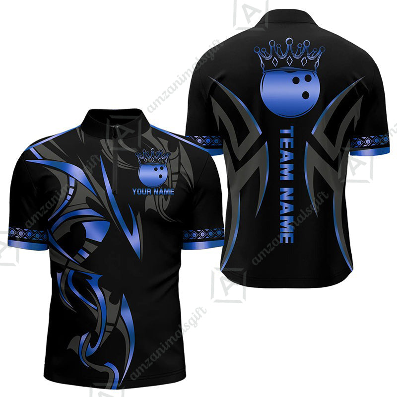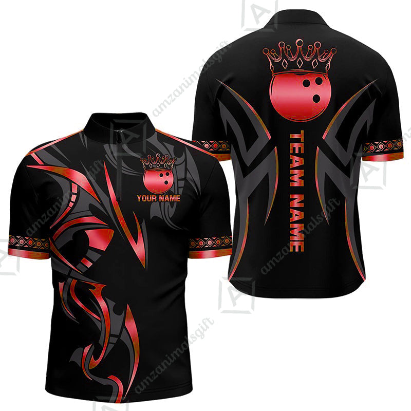 Custom Bowling Jersey, Bowling Uniforms Quarter-Zip Shirt, Bowling Ball Crown Multicolor Options Personalized Name And Team Name