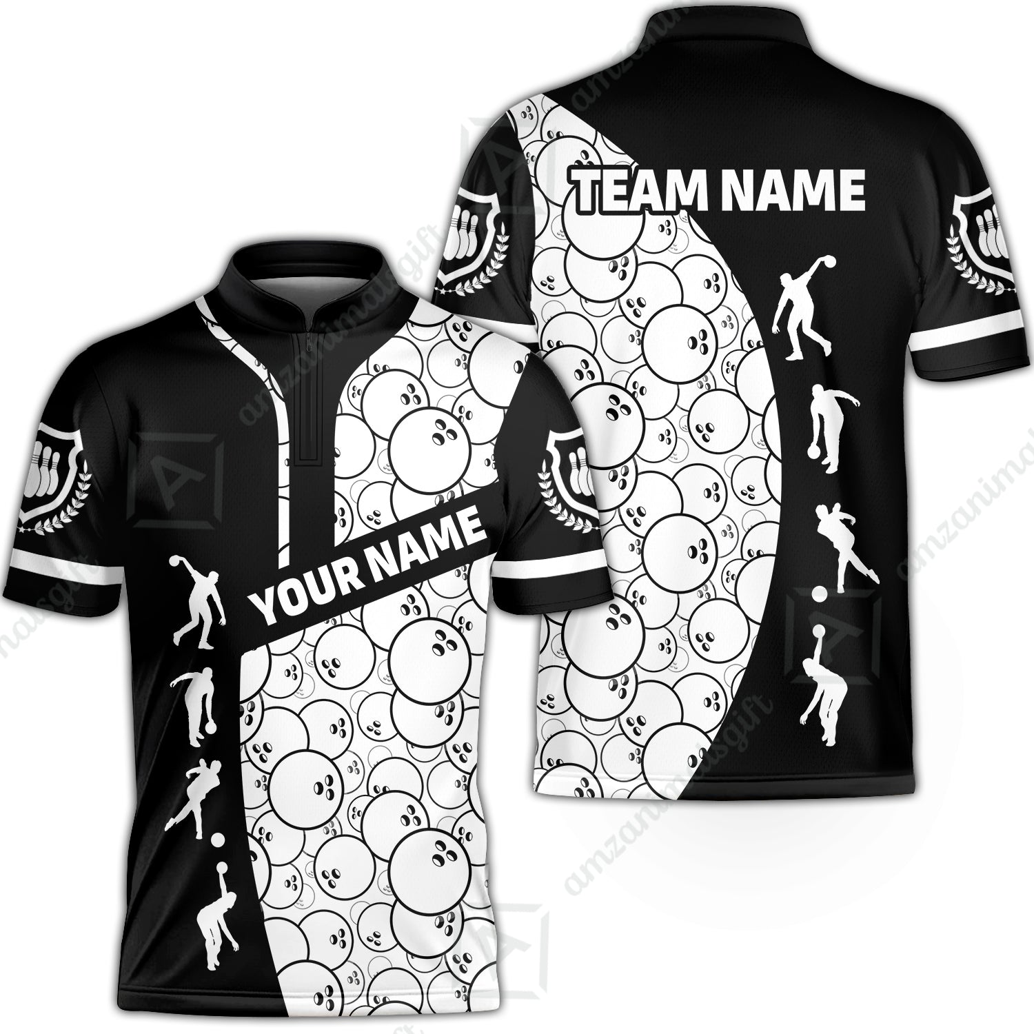 Custom Bowling Team Jerseys Polo Shirts, Bowling Pattern uniforms Ball & Pins Personalized Bowling Name And Team Name