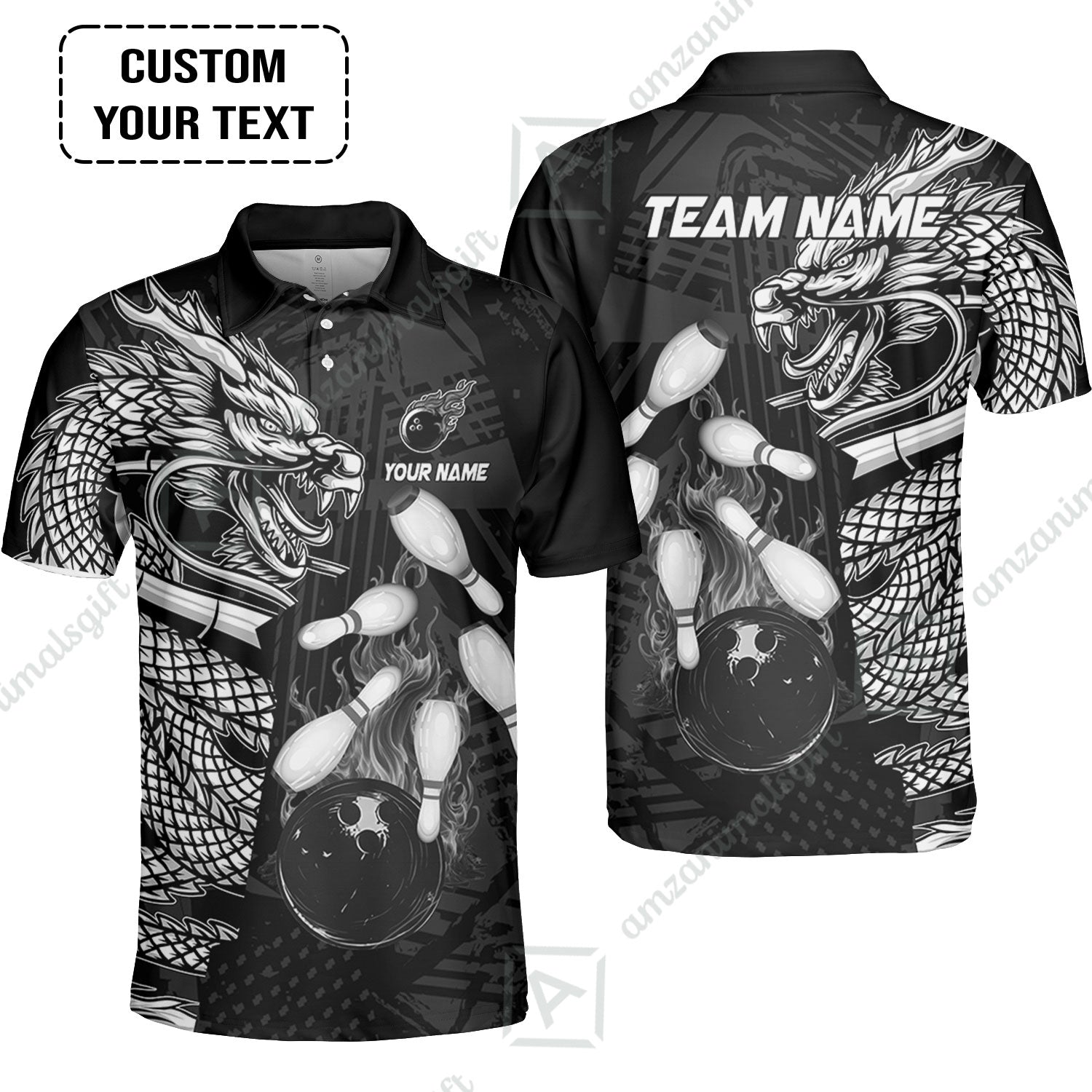 Custom Bowling Team Jerseys Polo Shirts, Bowling uniforms Bowling & Pins Dragon Flame Fire Multicolor Options Personalized Name And Team Name