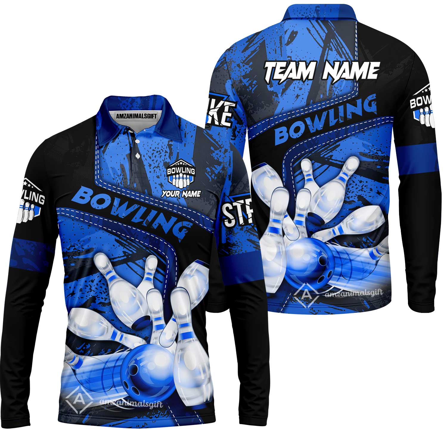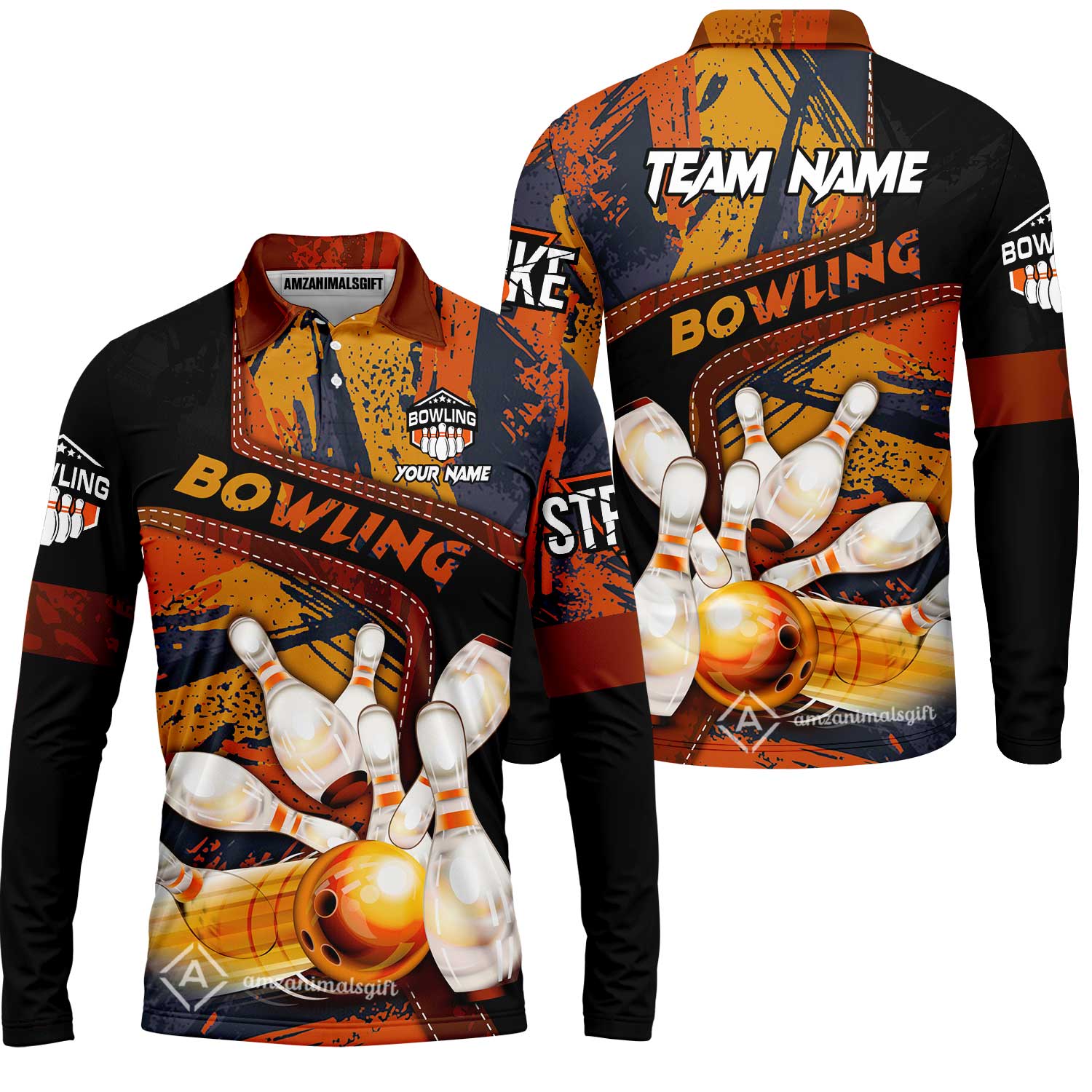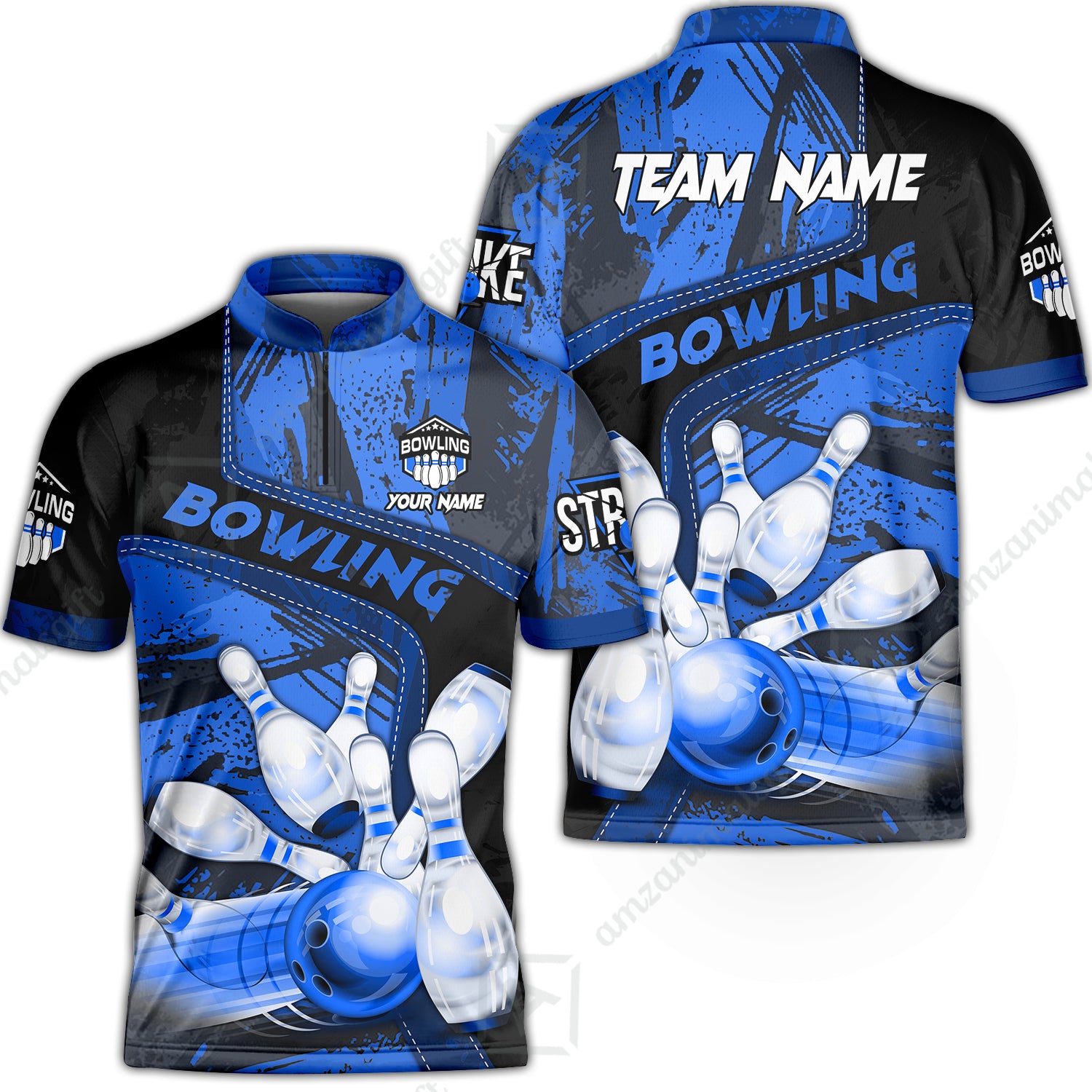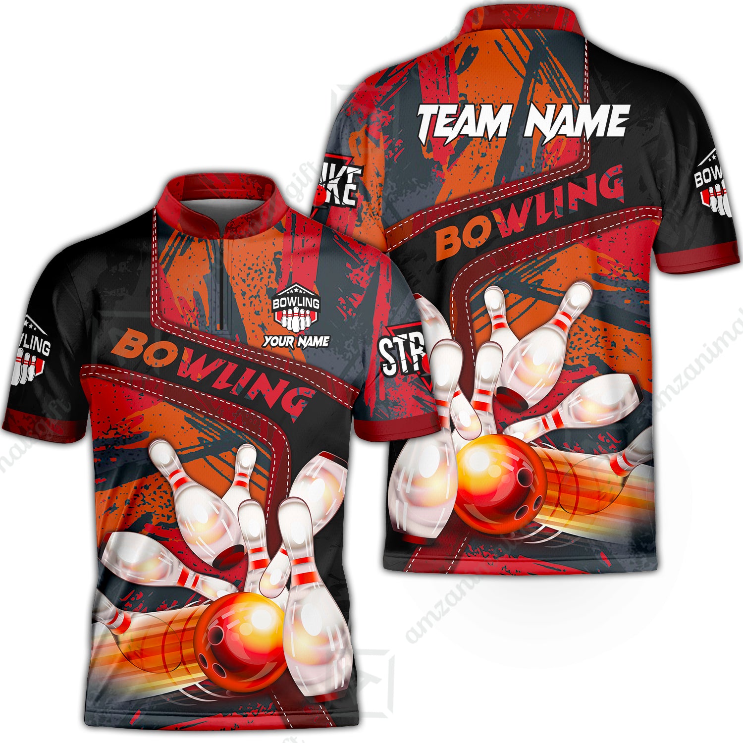 Custom Bowling Team Quater-Zip Polo Shirts, Bowling Uniforms Jerseys Brush Patterns, Multi Colors Personalized Name And Team Name