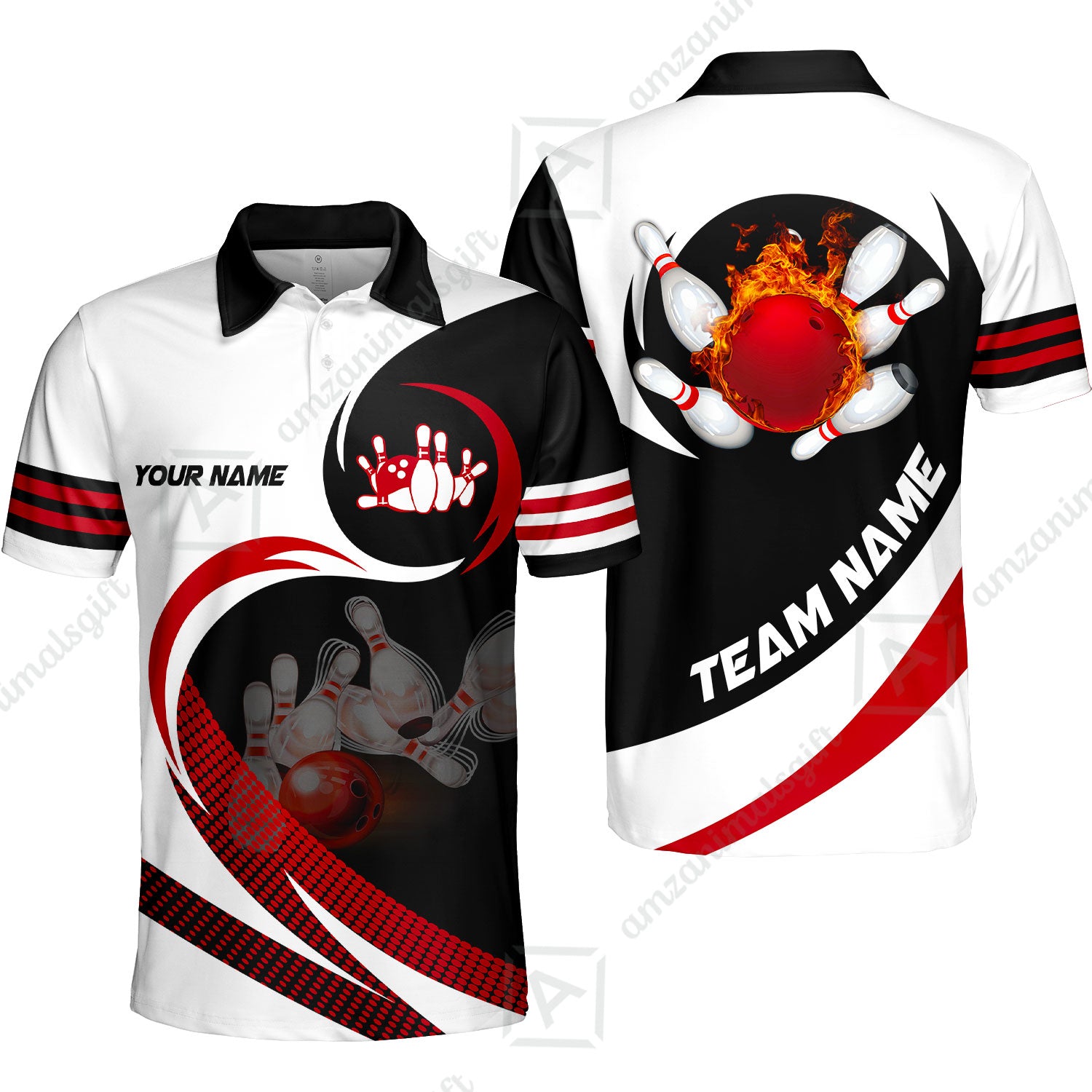 Custom Bowling Team Jersey Shirts, Custom Flame Ball Bowling Uniforms Unisex Polo, Multi Colors Personalized Name And Team Name