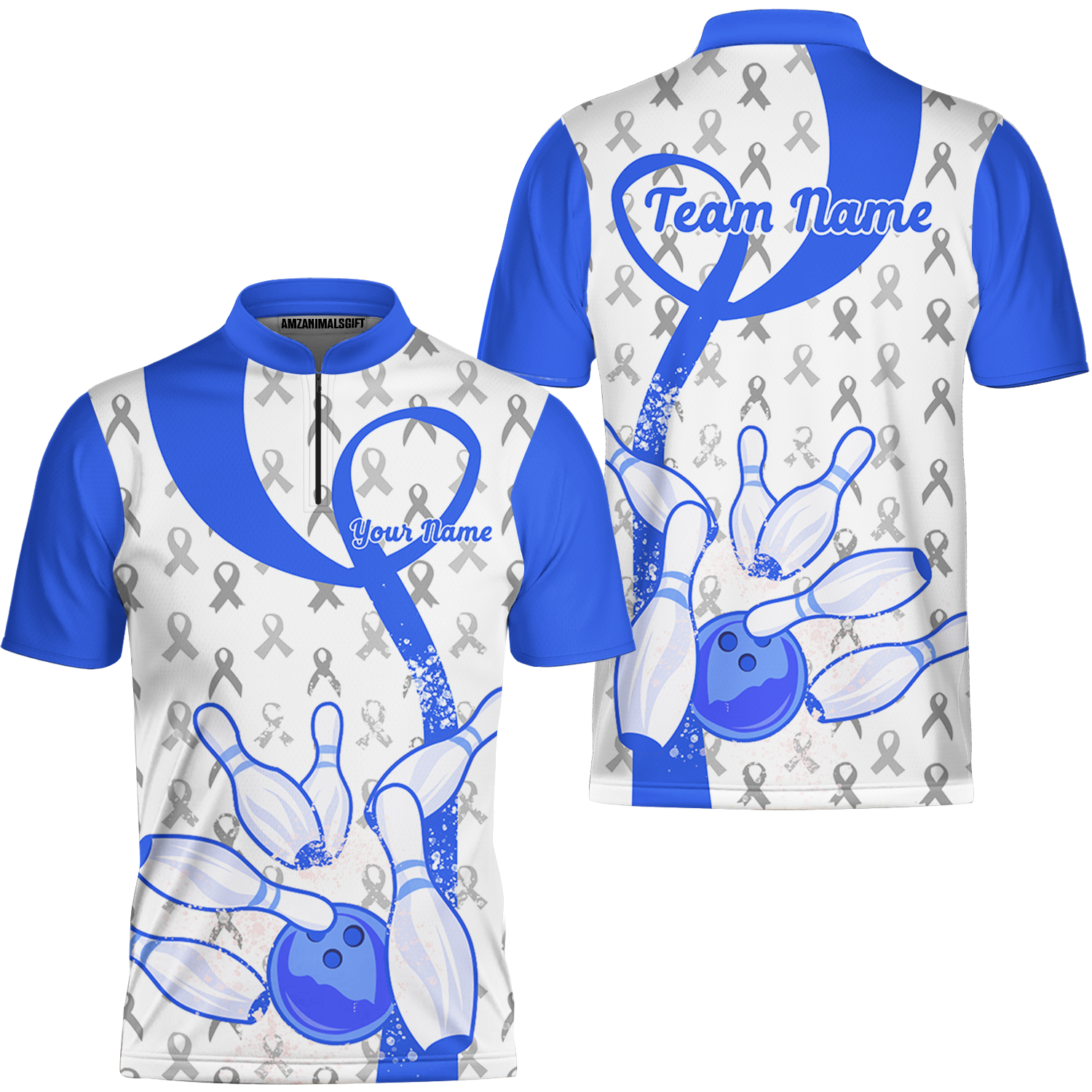 Custom Bowling Team Shirt, Blue Ribbon and Bowling Pins Explosion Shirt, Personalized Team & Player Bowling Jersey