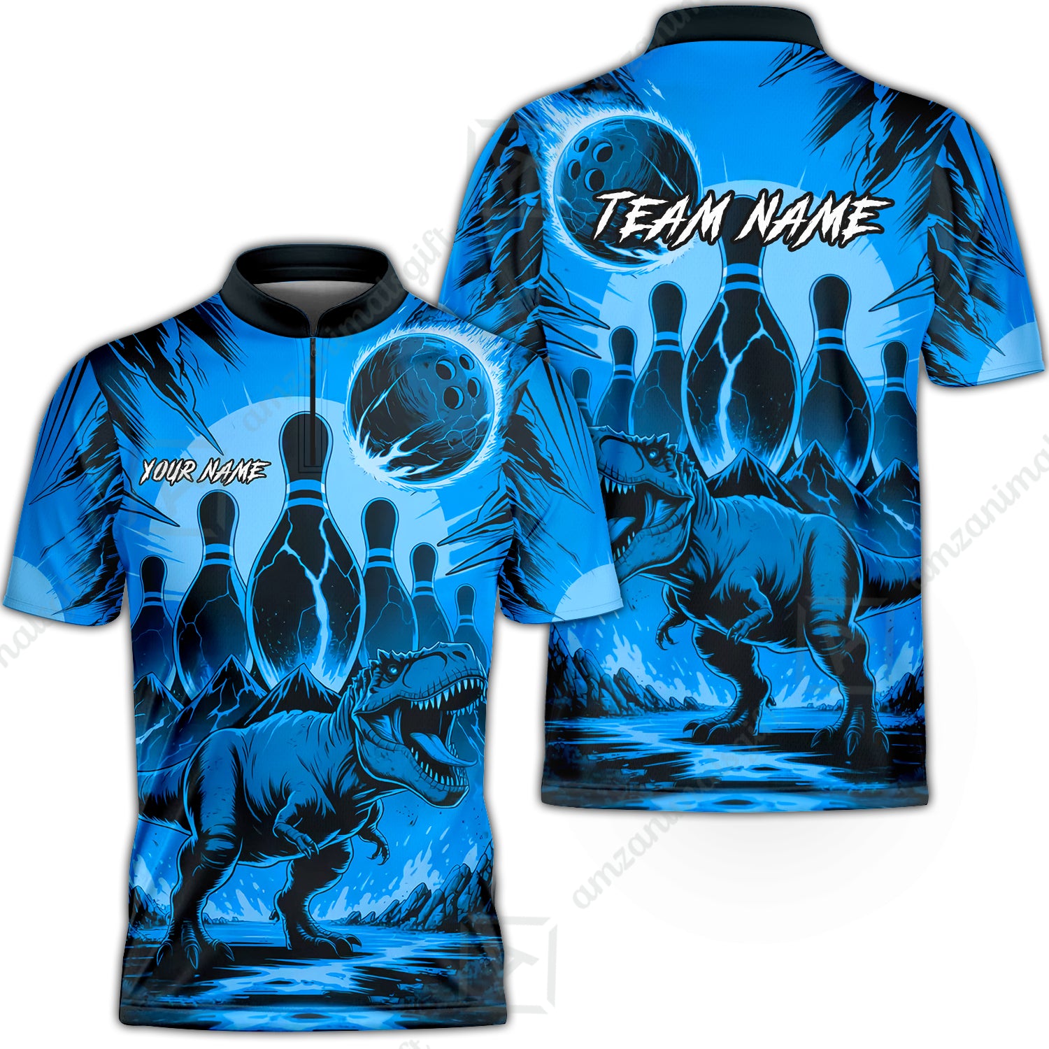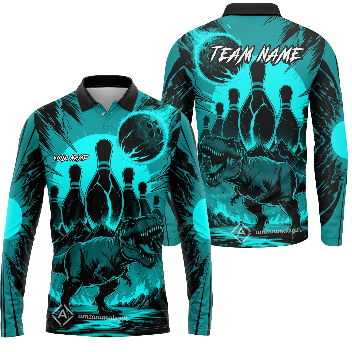 Custom Bowling Team Shirt – Bowling With T-Rex In Lava Volcano Multicolor Option Personalized Jersey Bowling Uniform