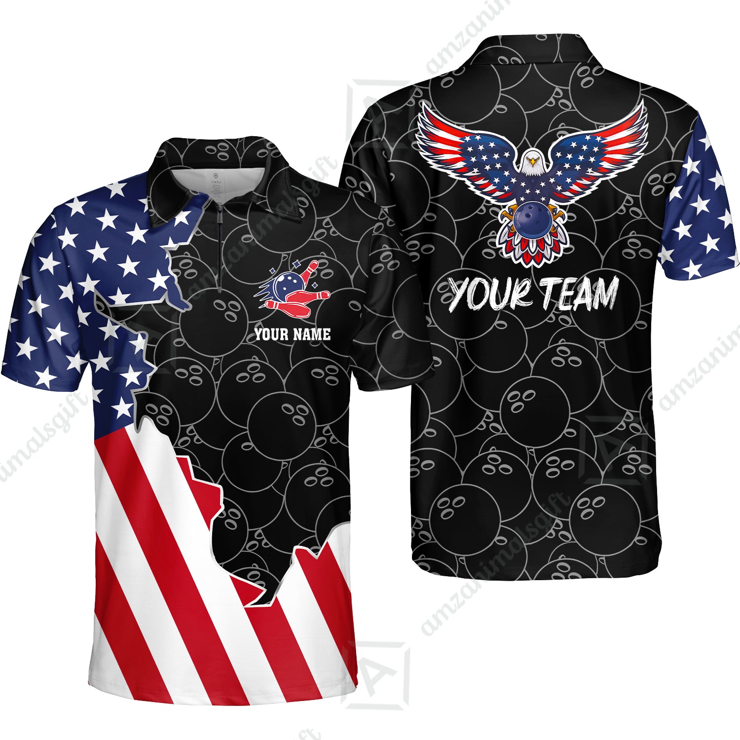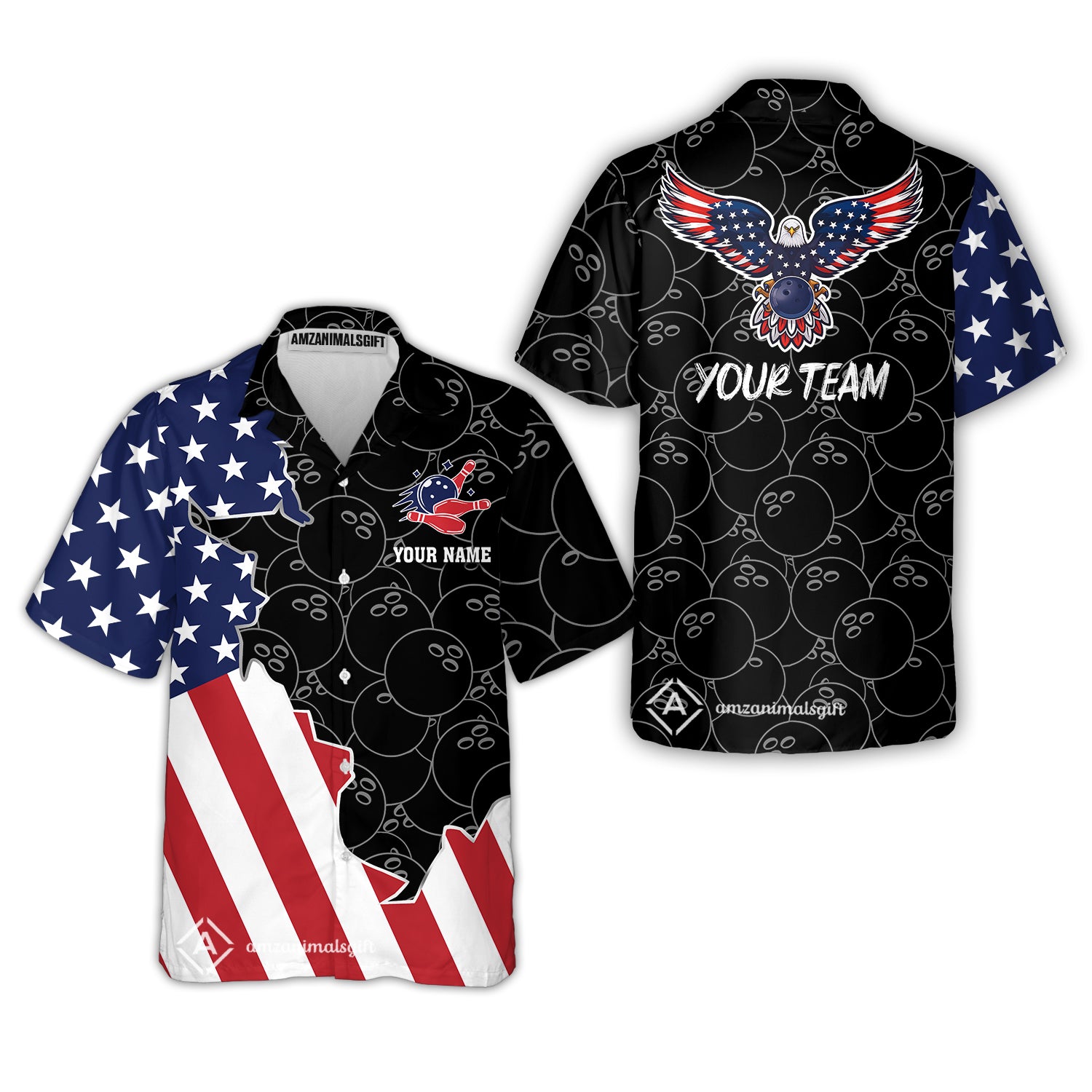 Custom Bowling Team Uniform American Flag with Eagle Symbol, Personalized Name And Team Name