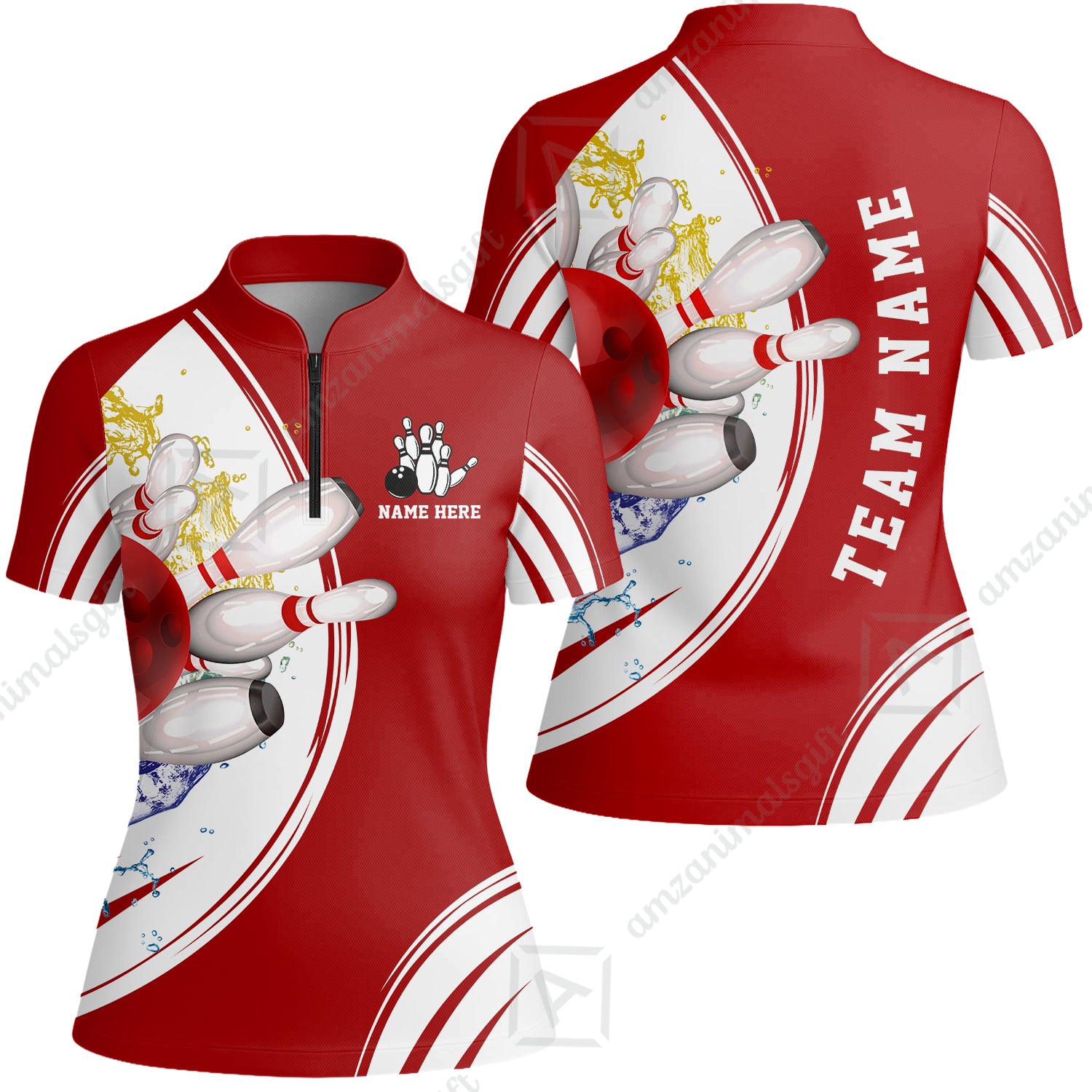 Custom Bowling Team Women Jersey Shirts, Custom Cyan Red Blue Bowling Uniforms Jerseys, Personalized Name And Team Name