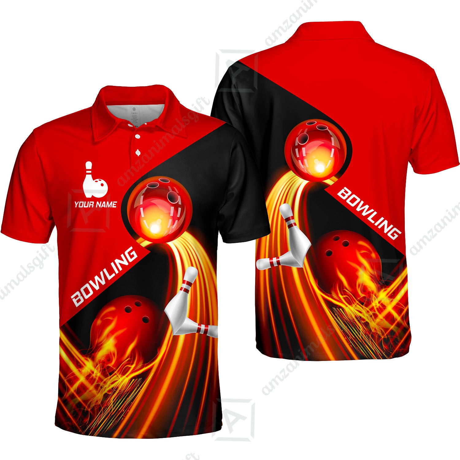 Custom Bowling Unisex Polo Shirt - Amazing Fire Bowling Ball Pattern Personalized Name Polo Shirt For Men & Women, Bowling Lover