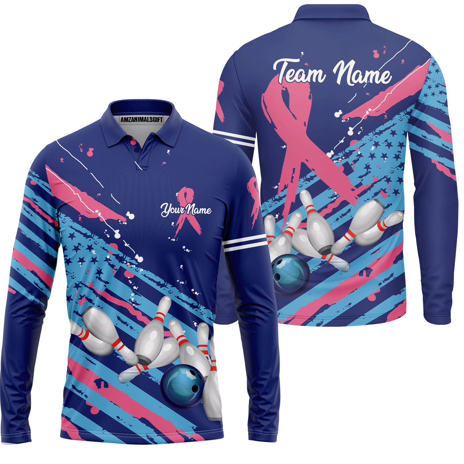 Custom Breast cancer awareness Bowling Team Jerseys Polo Shirts, Bowling uniforms, Breast cancer Bowling Personalized Name And Team Name