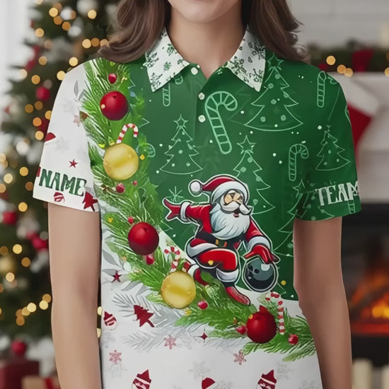 Custom Christmas Santa Bowling Team Jerseys Polo Shirts, Christmas Santa Bowling uniforms - Bowling Polo Personalized Name And Team Name