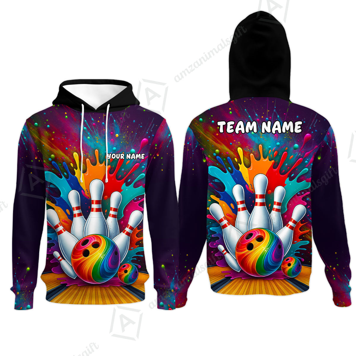 Custom Color Splash Bowling Team Jerseys Polo Shirts, Strike Bowling uniforms, Strike Bowling Personalized Name And Team Name