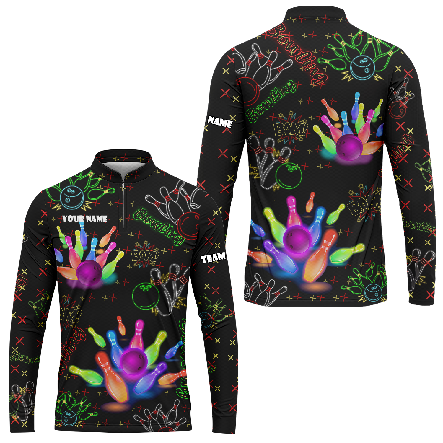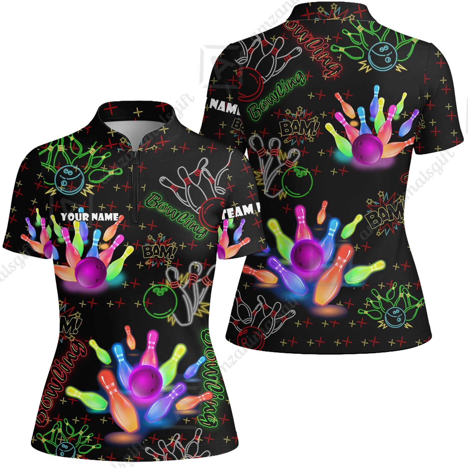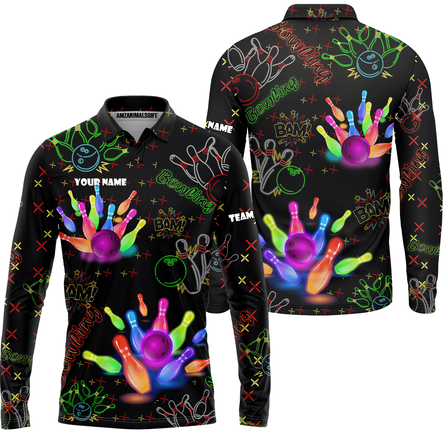 Custom Colorful Neon Bowling Team Jerseys Polo Shirts, Bowling uniforms, Funny Bowling Ball Colorful Neon Bowling Personalized Name And Team Name