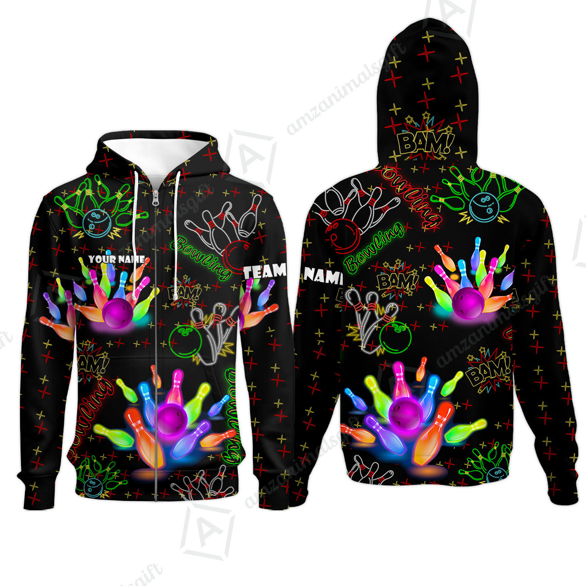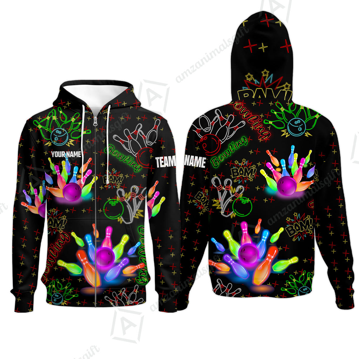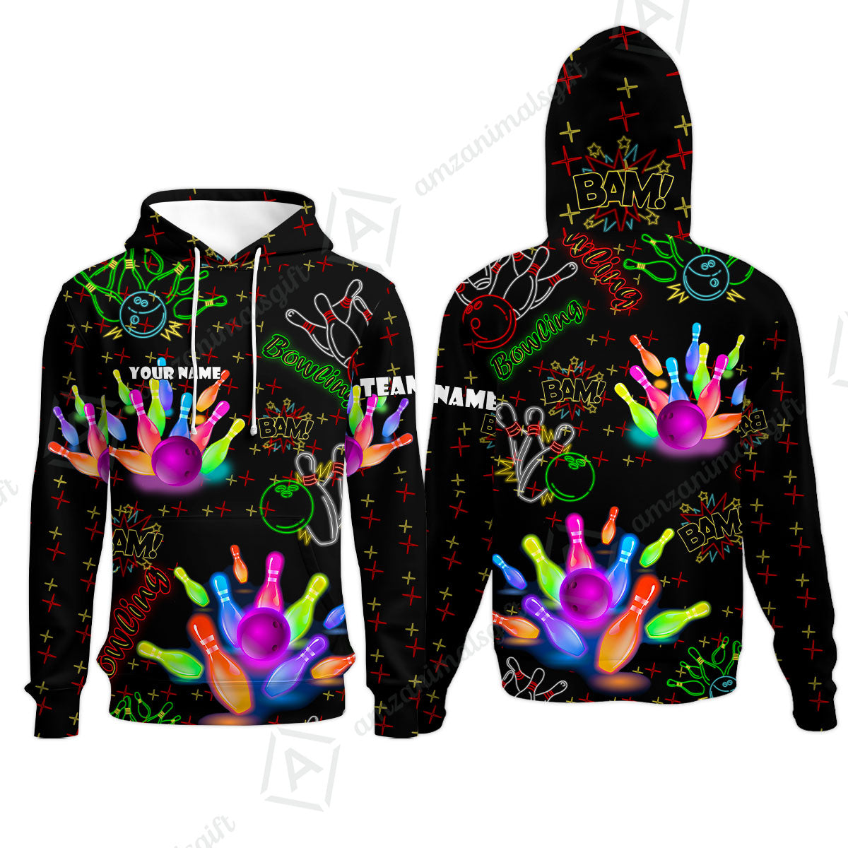 Custom Colorful Neon Bowling Team Jerseys Polo Shirts, Bowling uniforms, Funny Bowling Ball Colorful Neon Bowling Personalized Name And Team Name