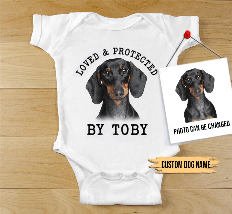 Custom Dachshund Baby Onesies, Loved & Protected By Custom Dog Baby Onesies, Personalized Onesies, Newborn Onesies - Perfect Gift For Baby, Baby Gift Onesie