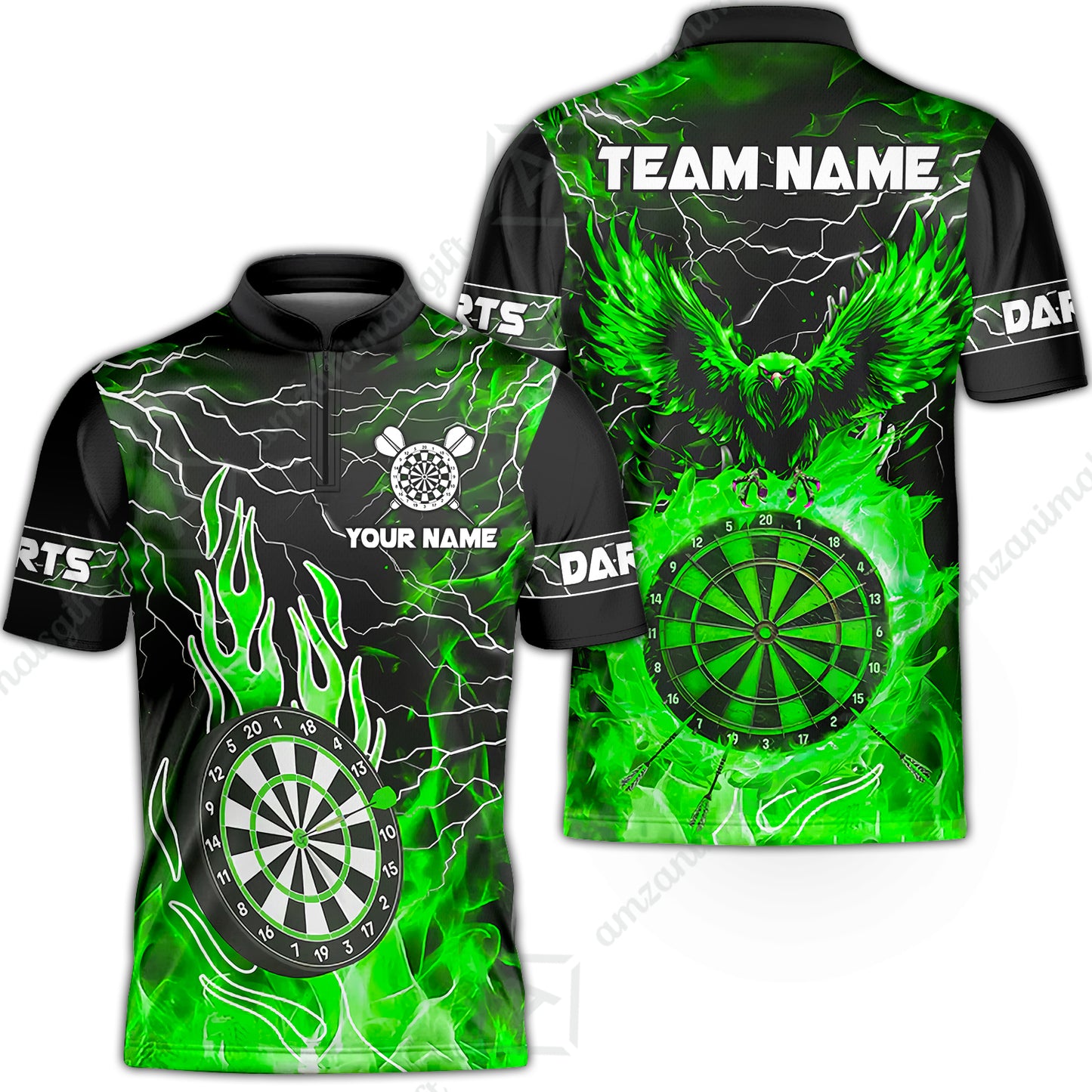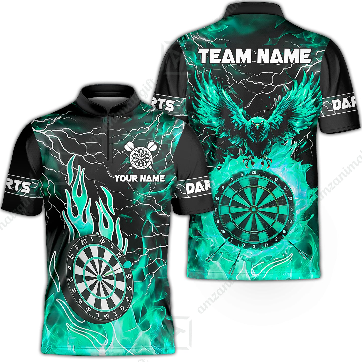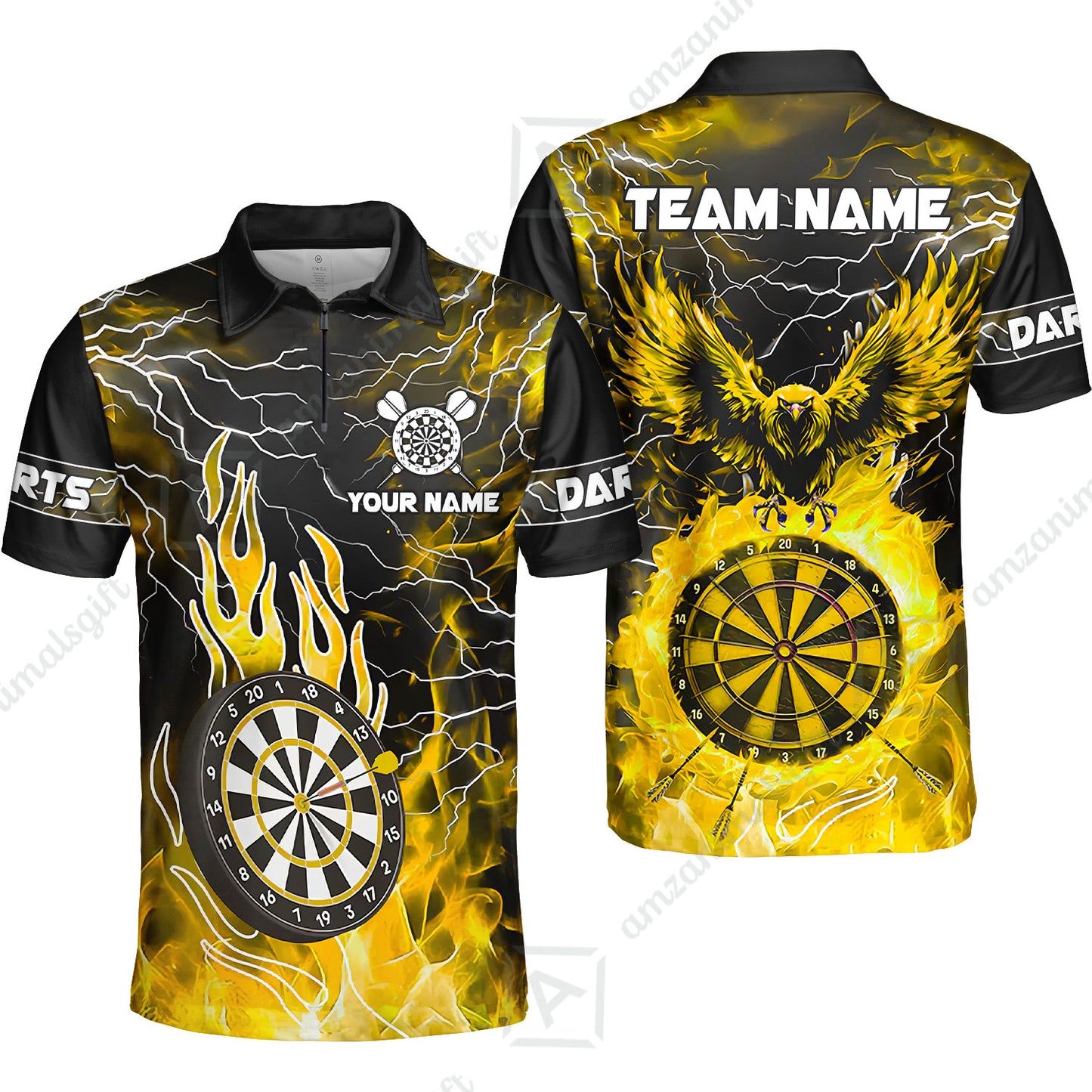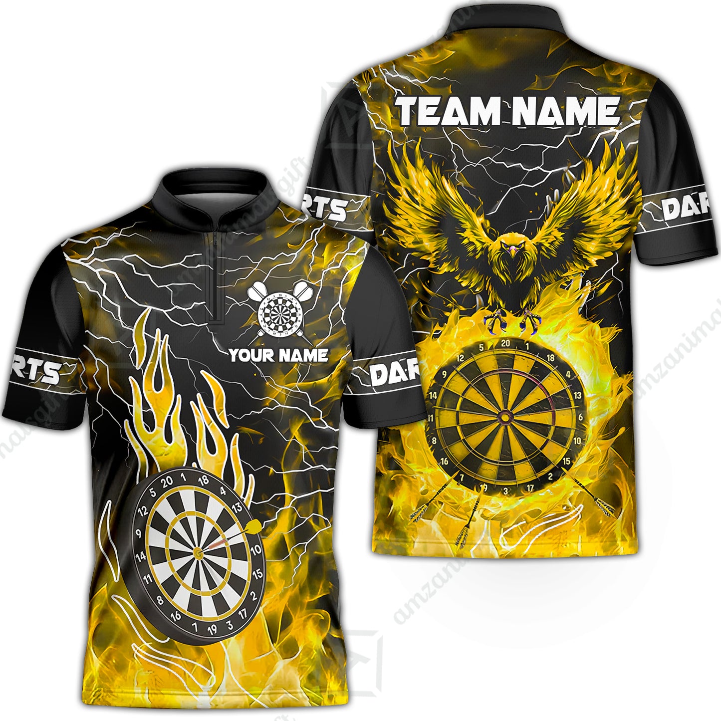 Custom Darts Team Jersey, Dartboard Fire Flame Custom Eagle Darts Jersey Polo Quarter-Zip Shirts, Custom Name And Team Name Darts Uniforms Jersey